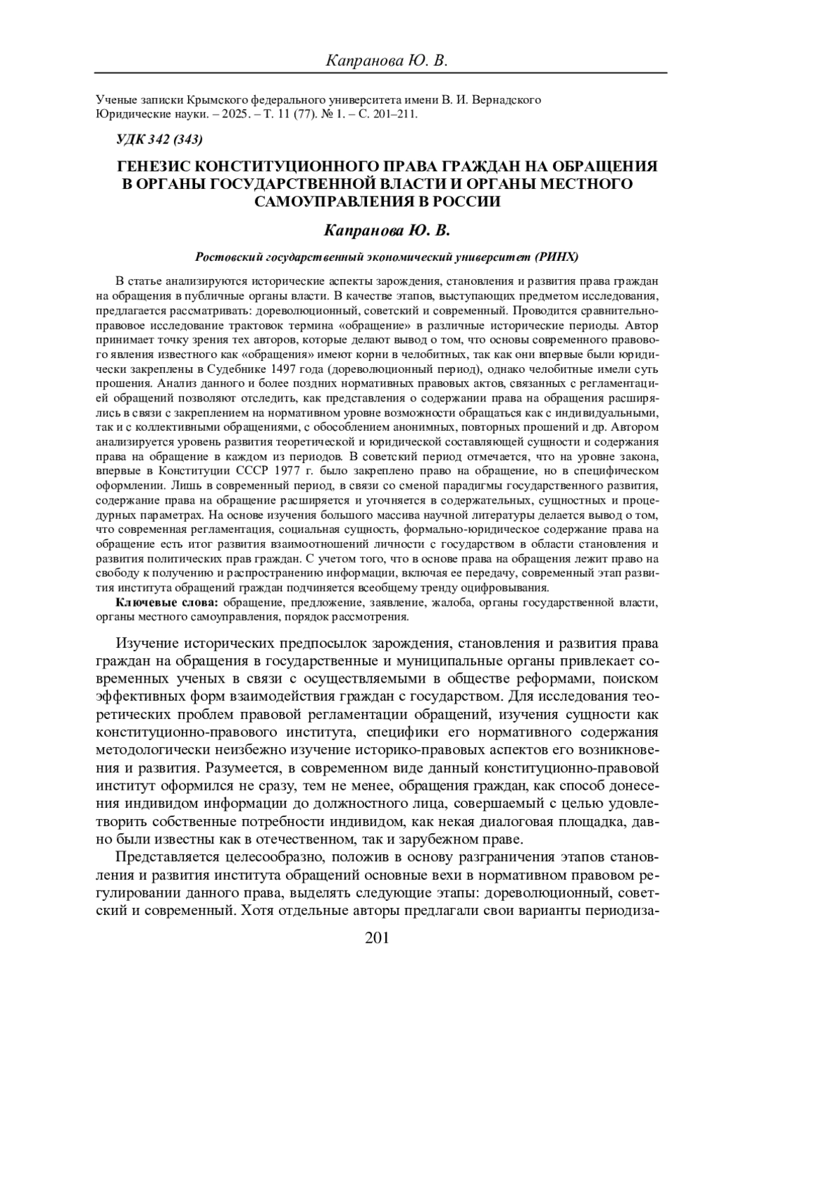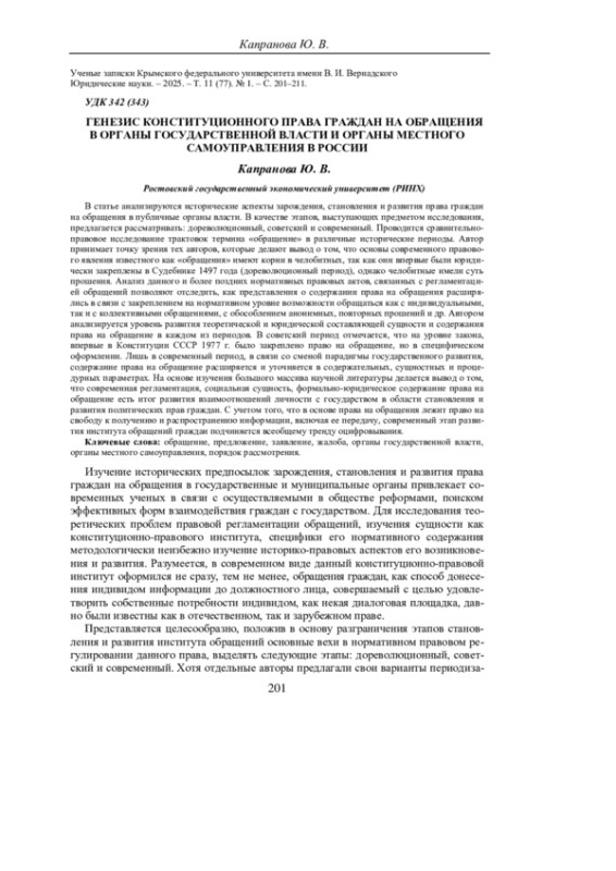 2. Скрябина М.В. Реализация конституционного права граждан на обращения в органы публичной власти: Дисс.. канд. юрид. наук. - СПб., 2007. - 230 с. EDN: NOTDRX