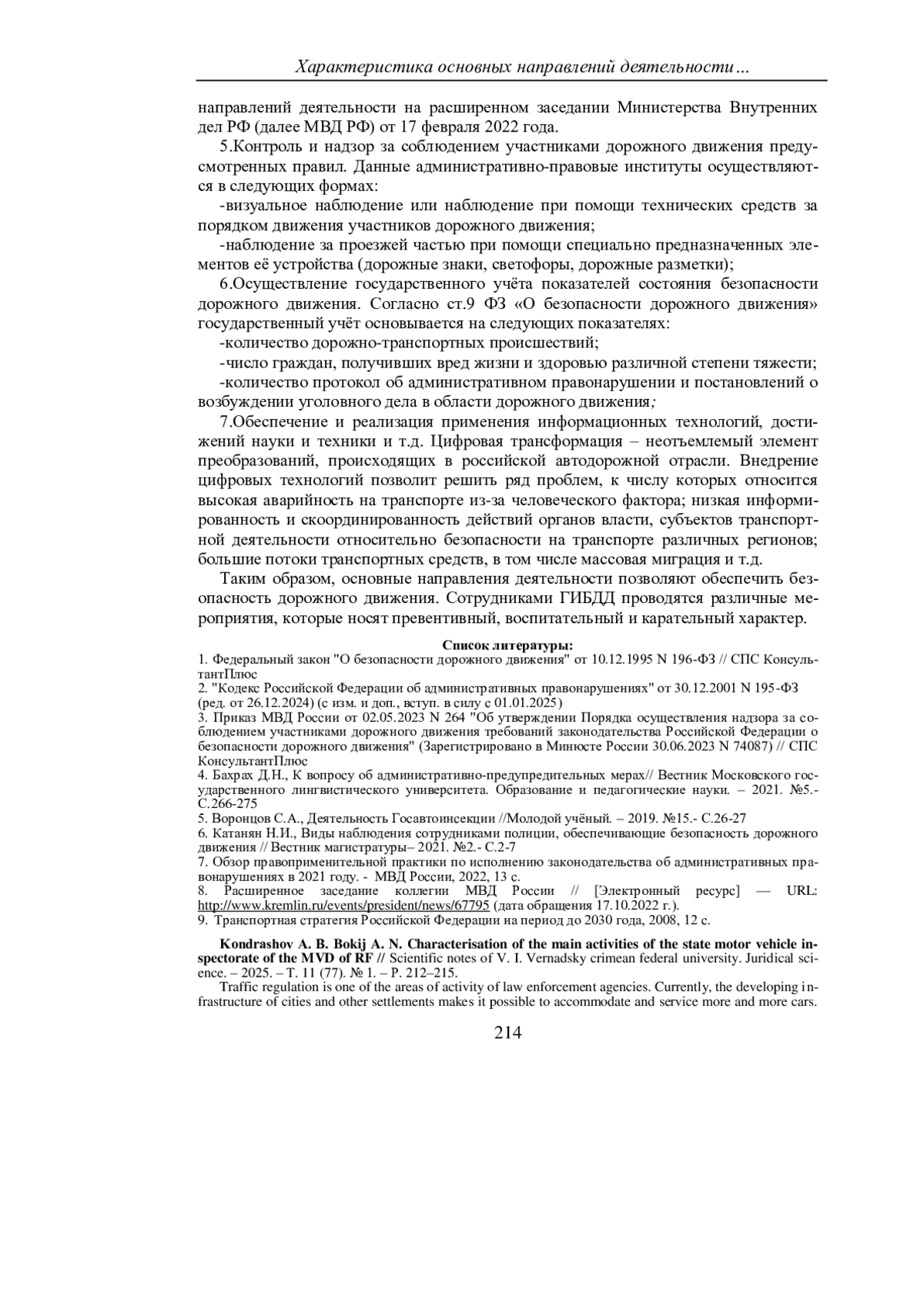 5. Воронцов С.А., Деятельность Госавтоинсекции //Молодой учёный. - 2019. №15.- С.26-27.