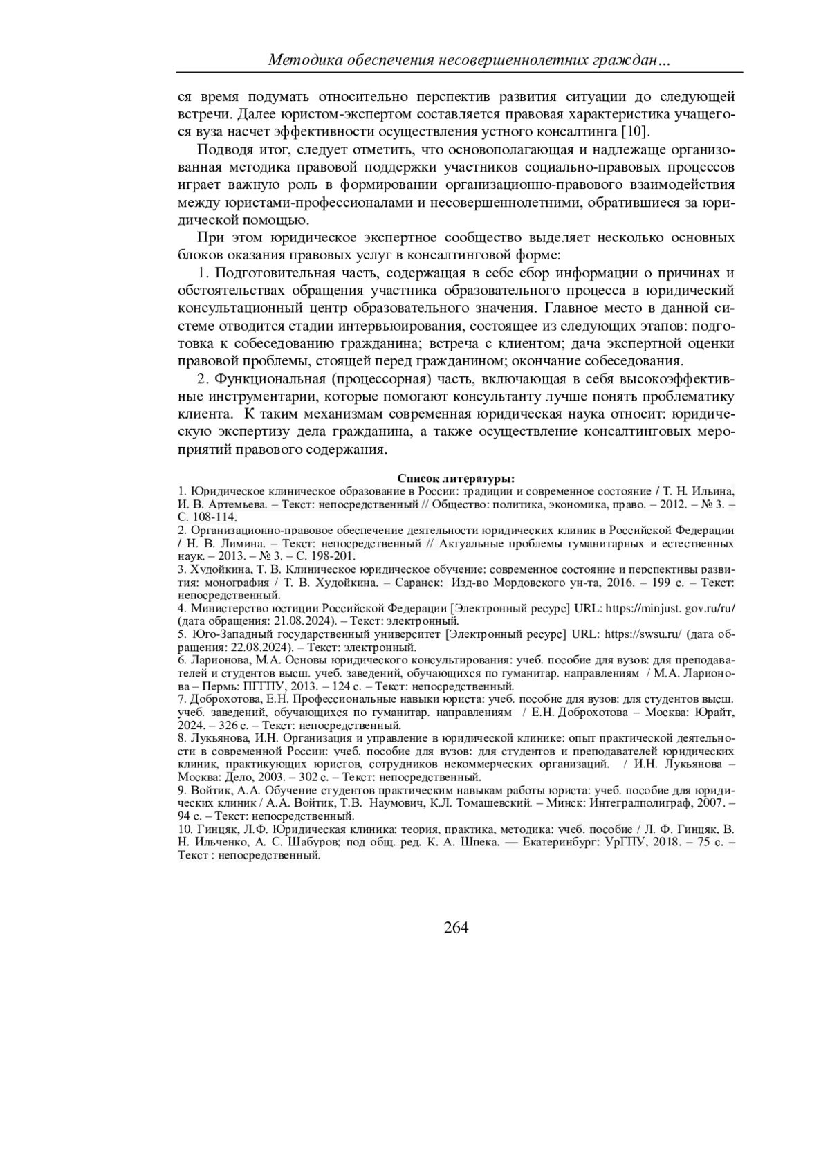 Статья: МЕТОДИКА ОБЕСПЕЧЕНИЯ НЕСОВЕРШЕННОЛЕТНИХ ГРАЖДАН ЮРИДИЧЕСКОЙ ПОДДЕРЖКОЙ В КОНСАЛТИНГОВОМ ФОРМАТЕ (2025)
