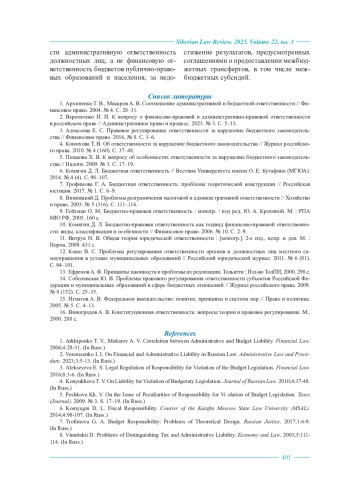 1. Архипенко Т. В., Макаров А. В. Соотношение административной и бюджетной ответственности // Финансовое право. 2004. № 4. С. 28-31.