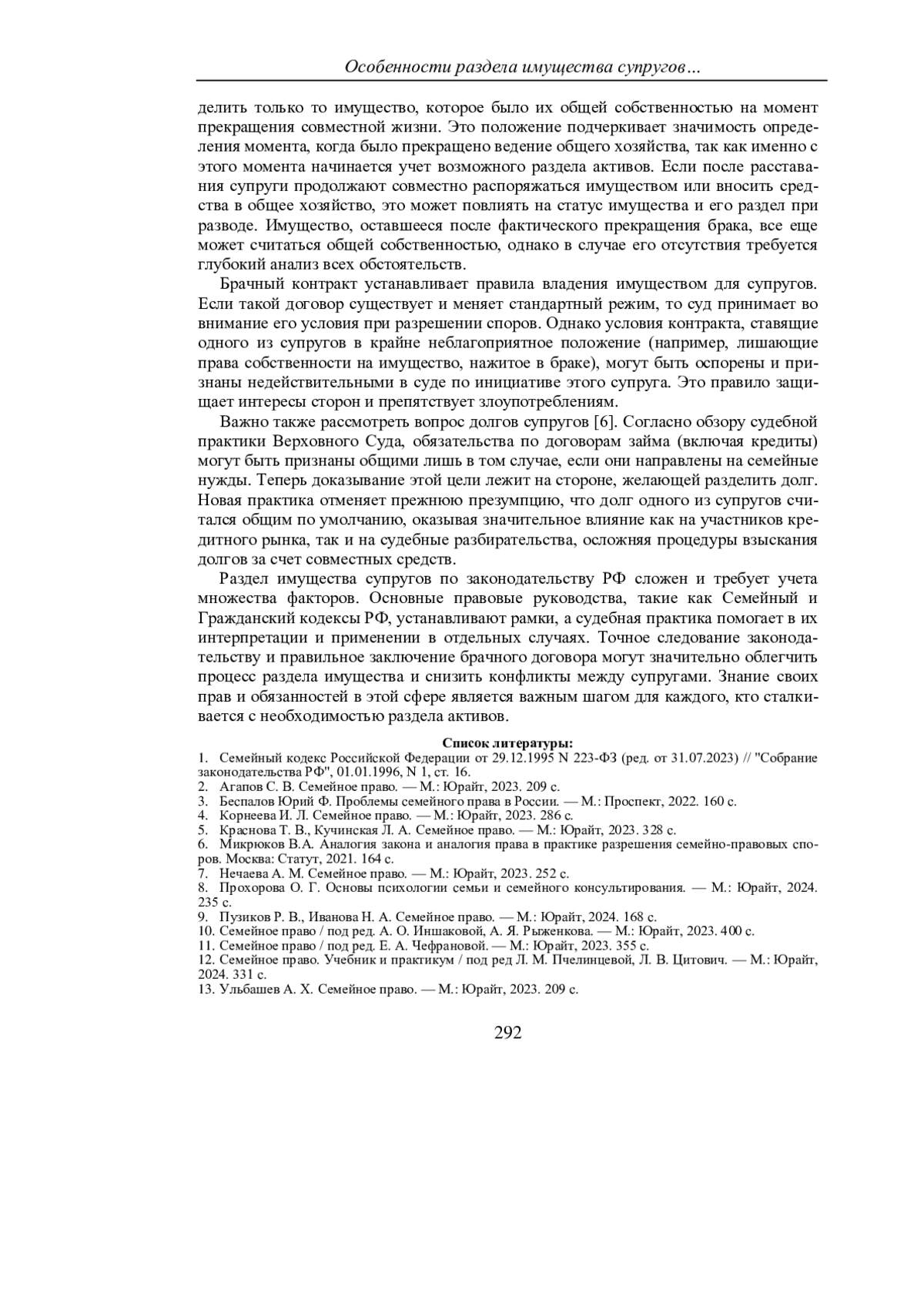 9. Пузиков Р. В., Иванова Н. А. Семейное право. - М.: Юрайт, 2024. 168 с.