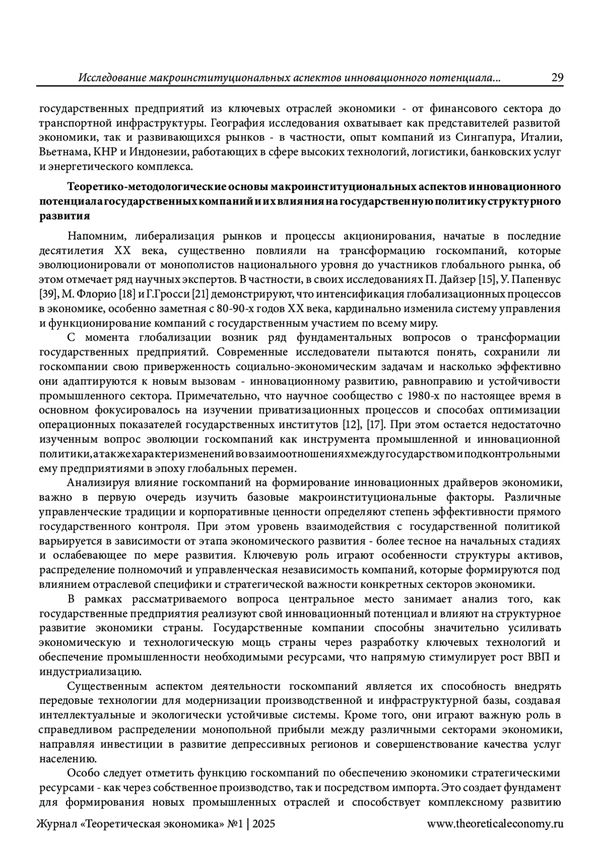 18. Florio M. Contemporary public enterprises: innovation, accountability, governance. Journal of Economic Policy Reform 17 (3), 2014, 201-208.