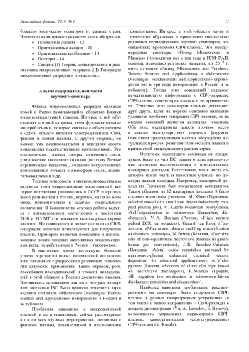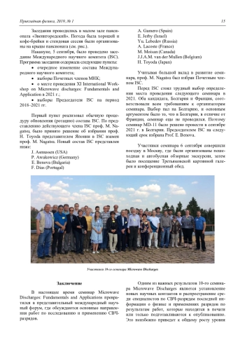 В настоящее время семинар Microwave Discharges: Fundamentals and Applications превратился в представительный международный научный форум, где обсуждаются основные направления работ по исследованию и применению СВЧразрядов.
