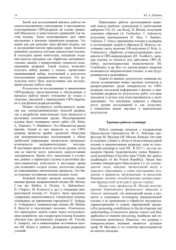 Yu. A. Lebedev Xth International Workshop on Microwave Discharges: Fundamentals and Applications (MD-10) 11