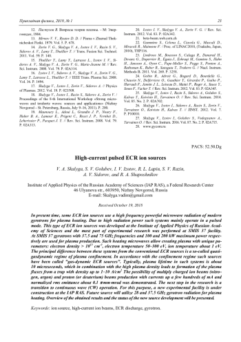 1. Golubev S. V., Razin S. V., Sidorov A. V., Skalyga V. A., Vodopyanov A. V., Zorin V. G. // Rev. Sci. Instrum. 2004. Vol. 75. No. 5. P. 1675.