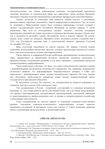 2. Оболонский, А.В. Гражданское недоверие к власти как предпосылка политического развития [Текст] / А.В. Оболонский // Политическая концептология. - 2013. - №3. EDN: RKOFBH