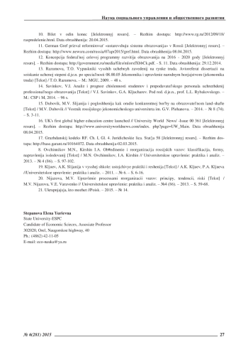20. Ниязова, М.В. Управление процессами реорганизации вузов: принципы, тенденции, риски /М.В. Ниязова, В.Е. Варавенко//Университетское управление: практика и анализ. -№4 (86). -2013. -С. 59-68. EDN: RVQLYF