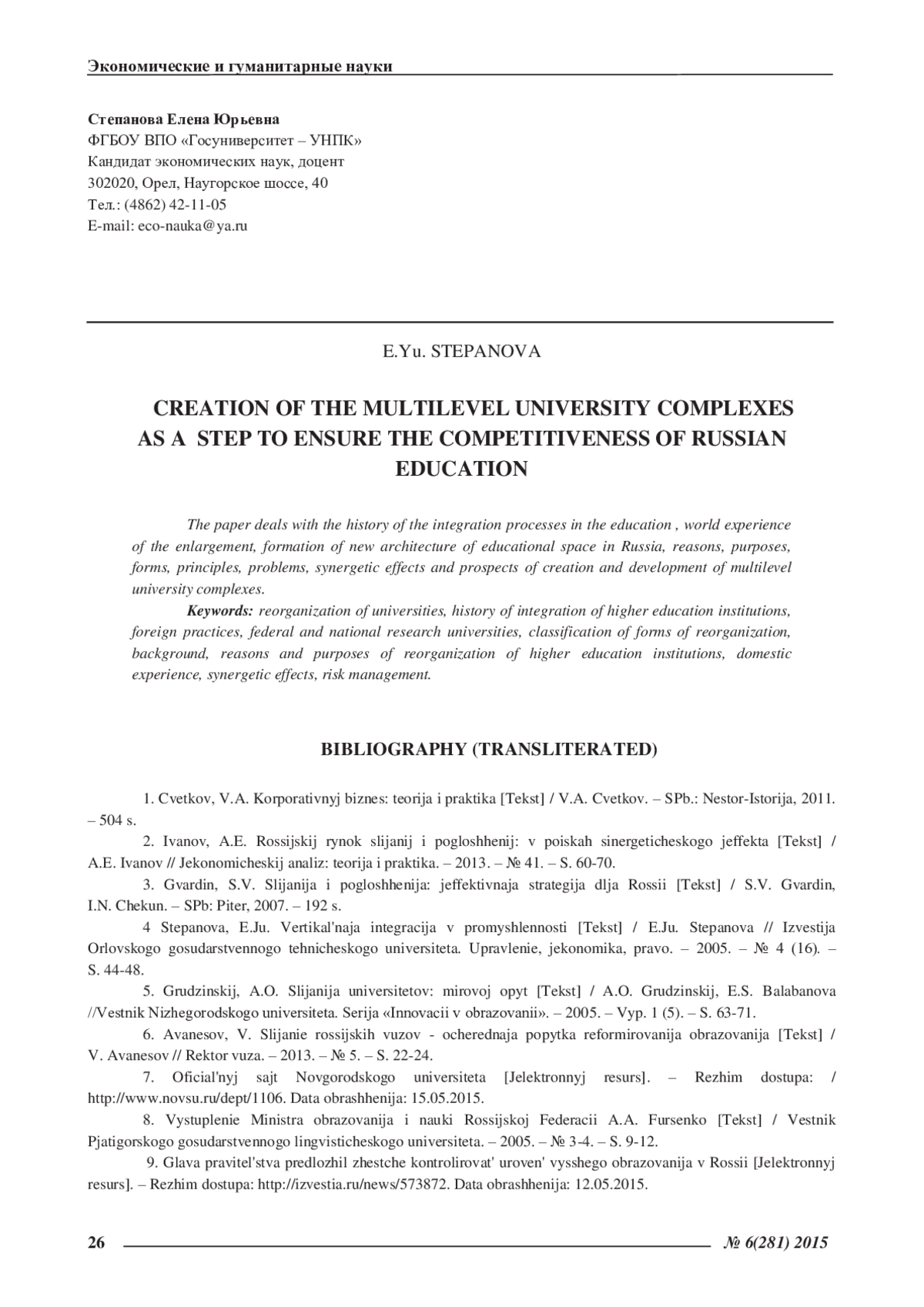 4. Степанова, Е.Ю. Вертикальная интеграция в промышленности /Е.Ю. Степанова//Известия Орловского государственного технического университета. Управление, экономика, право. -2005. -№ 4 (16). -С. 44-48.