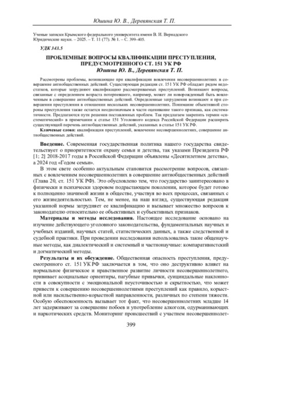 10. Ирицян В.В., Рябченко А.Г. Специфика преступлений против детей: сравнительные аспекты // Ученые записки Крымского федерального университета имени В.И. Вернадского Юридические науки. - 2024. - Т. 10 (76). № 3. - С. 480-487. EDN: YMPZUY