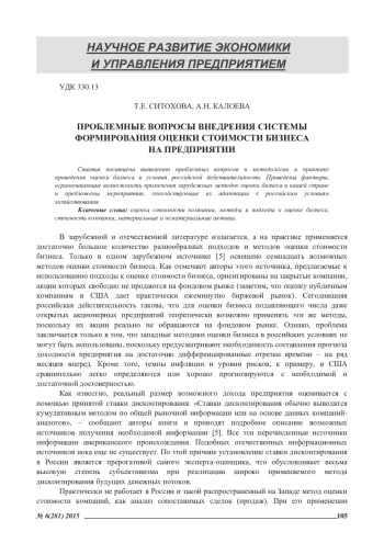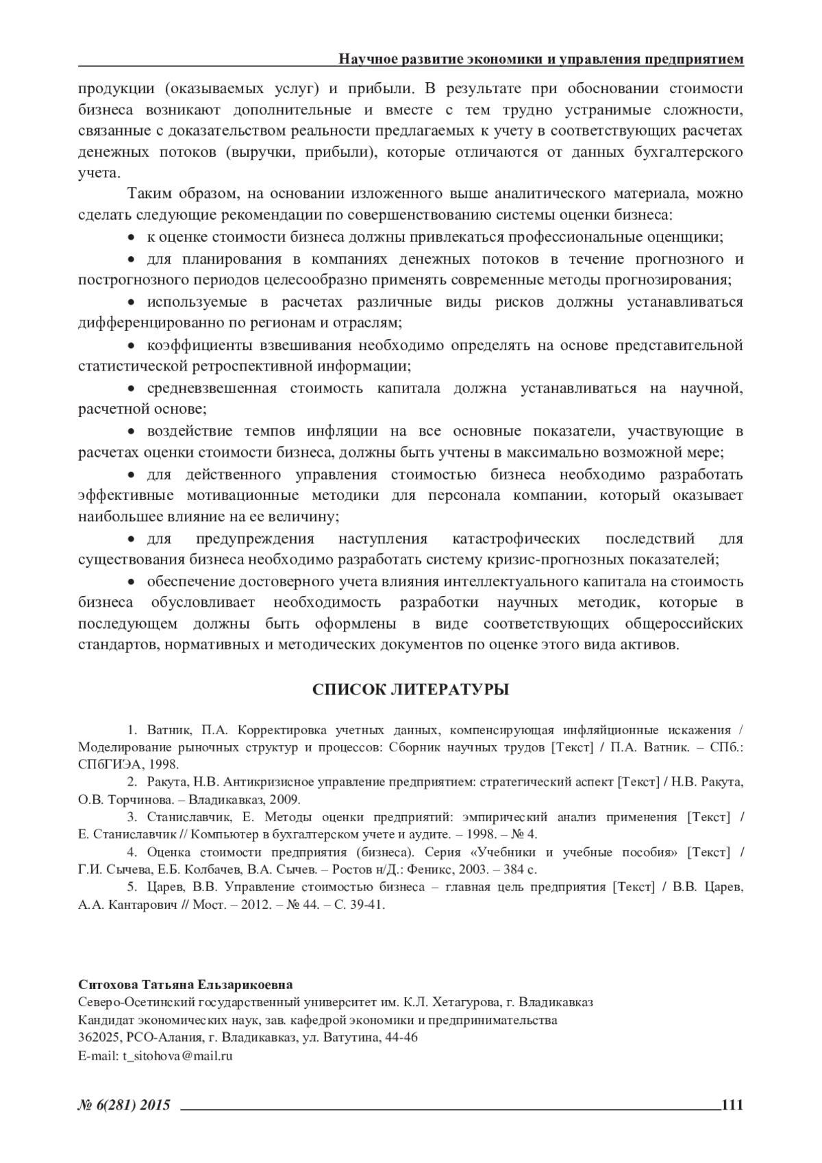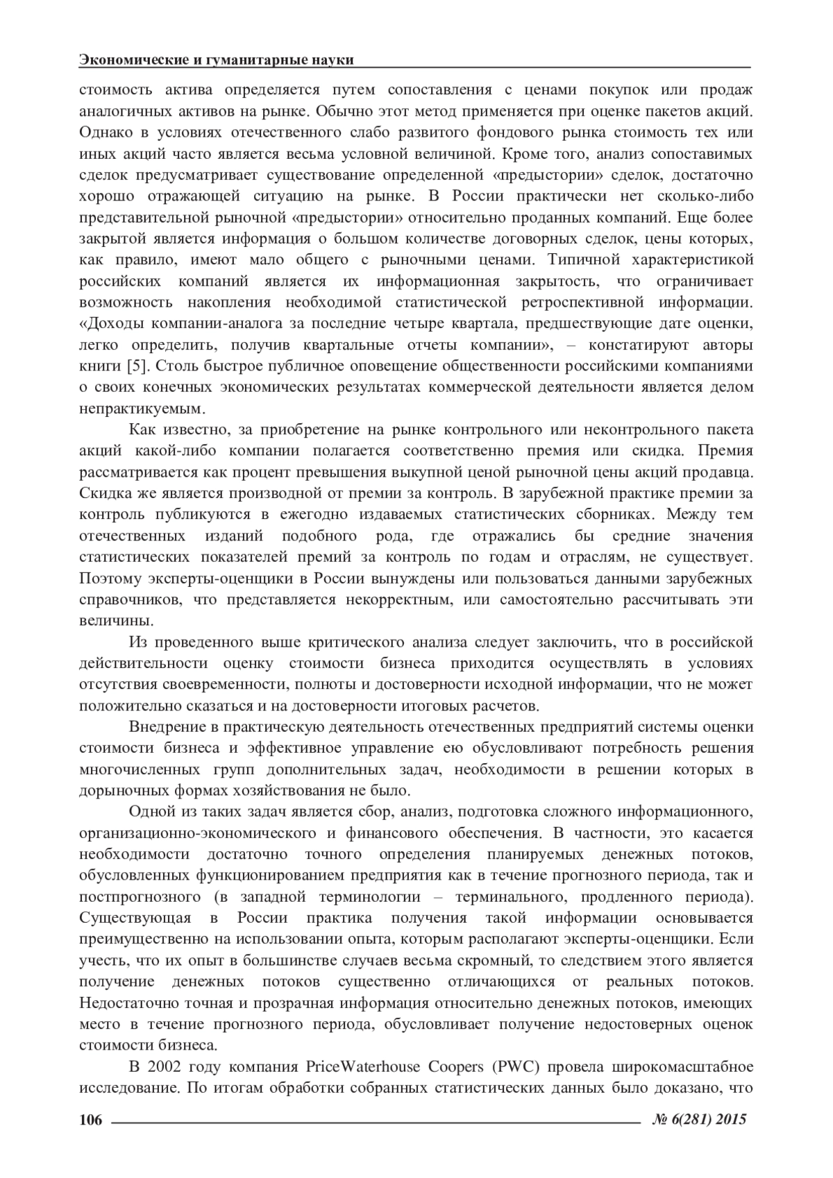 3. Станиславчик, Е. Методы оценки предприятий: эмпирический анализ применения [Текст] / Е. Станиславчик // Компьютер в бухгалтерском учете и аудите. - 1998. - № 4. EDN: WSZIKB