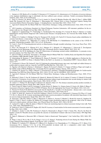 Статья: ПРИМЕНЕНИЕ ДИСТАНЦИОННОГО ТЕСТА С ШЕСТИМИНУТНОЙ ХОДЬБОЙ В КАРДИОРЕАБИЛИТАЦИИ: ОБЗОР (2025)