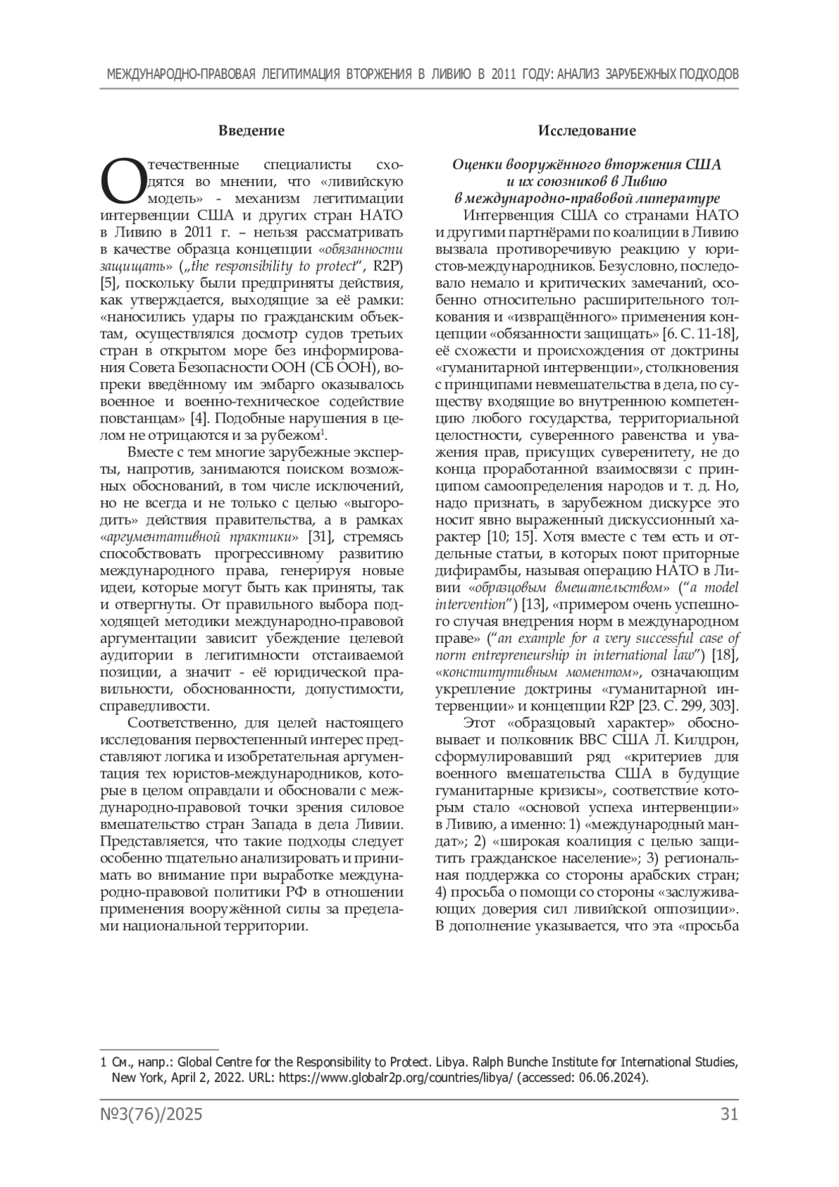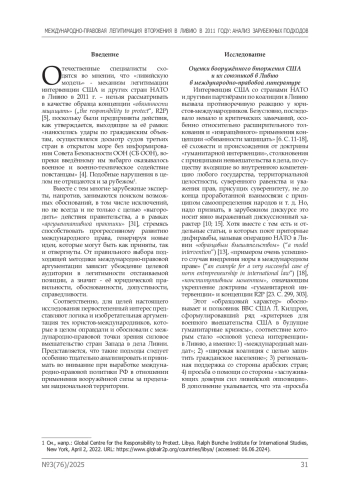 Статья: Международно-правовая легитимация вторжения в Ливию в 2011 году: анализ зарубежных подходов (2025)