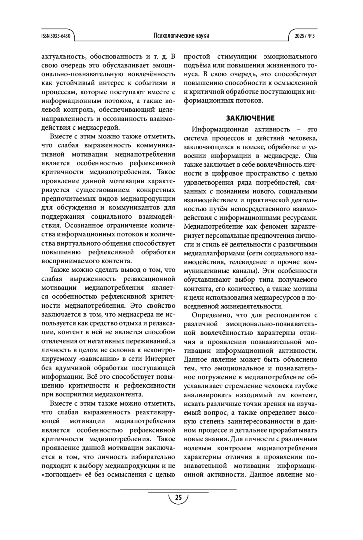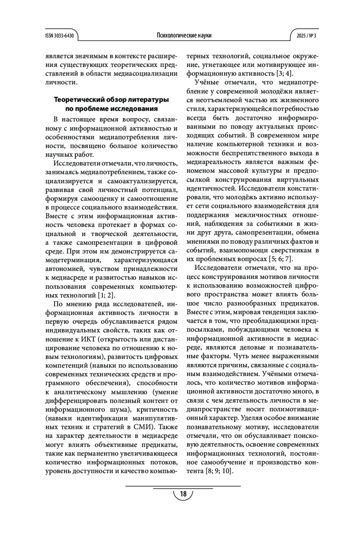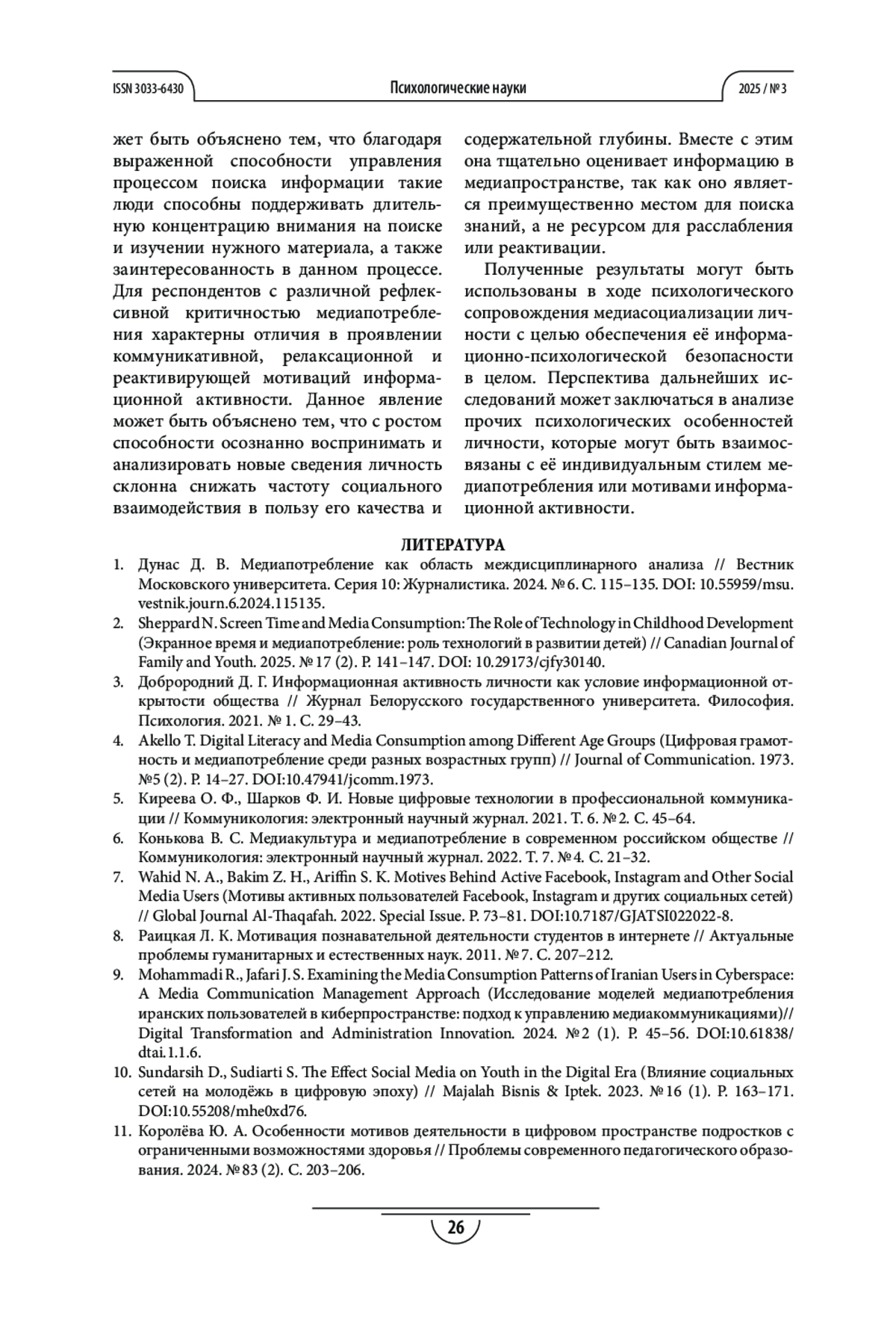 1. Дунас Д. В. Медиапотребление как область междисциплинарного анализа // Вестник Московского университета. Серия 10: Журналистика. 2024. № 6. С. 115-135. https://doi.org/10.55959/msu.vestnik.journ.6.2024.115135.