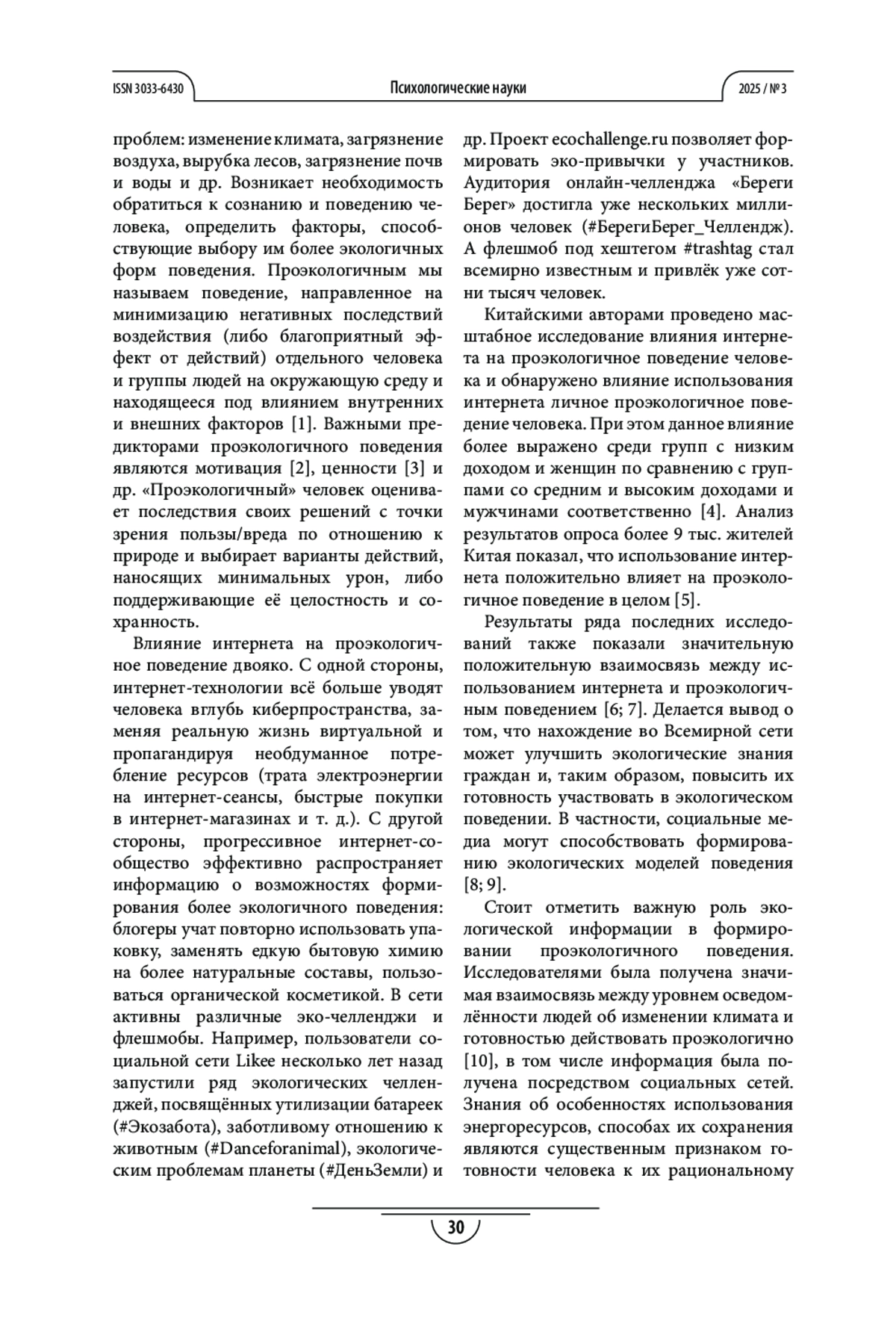 5. Gong X. Internet use encourages pro-environmental behavior: Evidence from China (Использование Интернета способствует бережному отношению к окружающей среде: данные из Китая) // Journal of Cleaner Production. 2020. Vol. 256. URL: https://www.sciencedirect.com (дата обращения: 20.04.2025). https://doi.org/10.1016/j.jclepro.2020.120725.