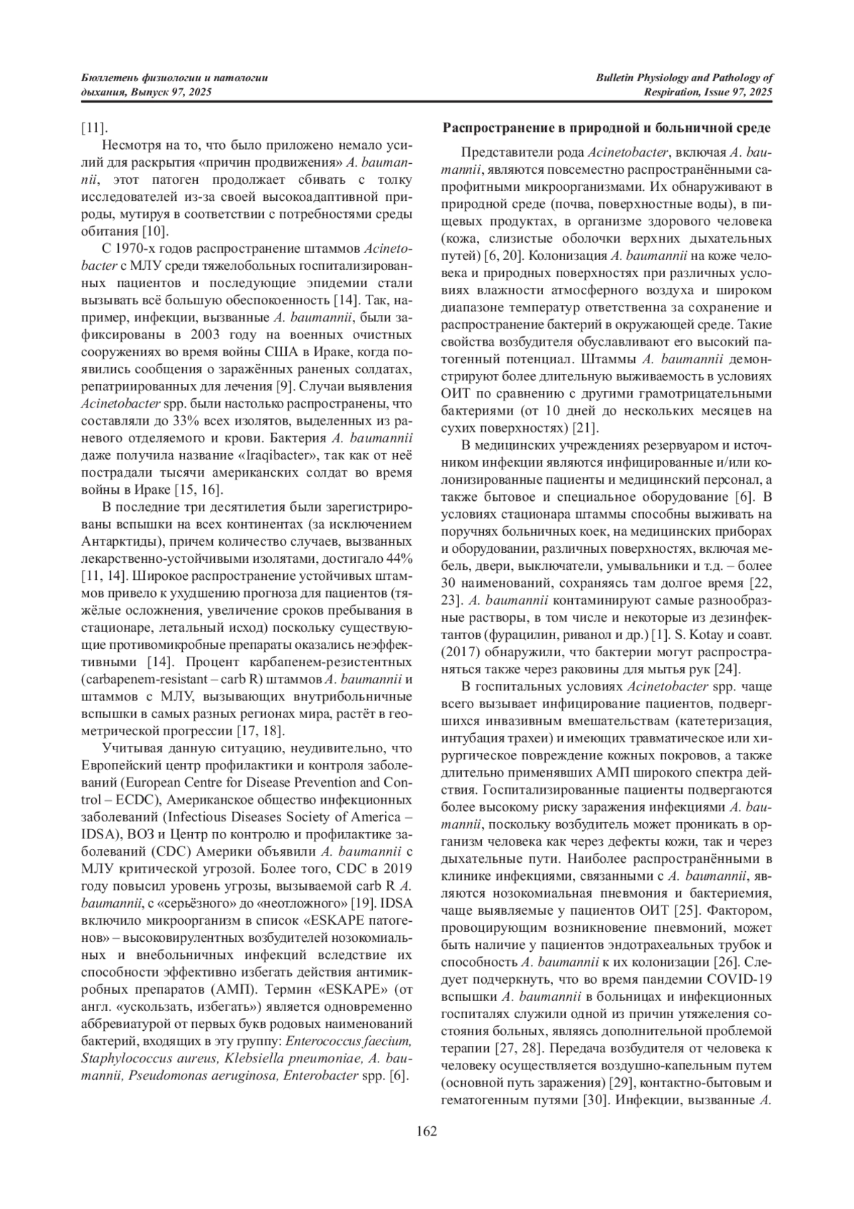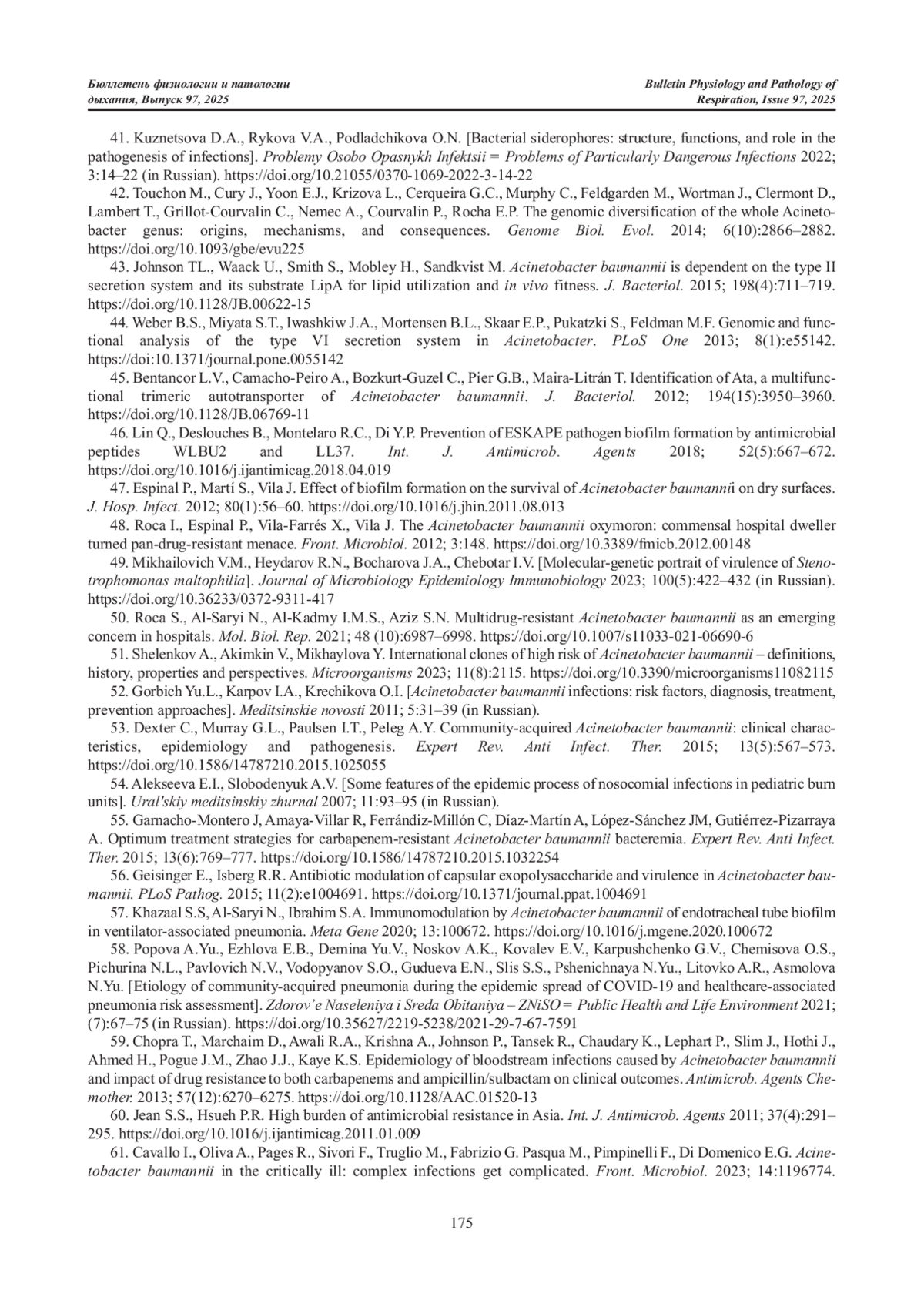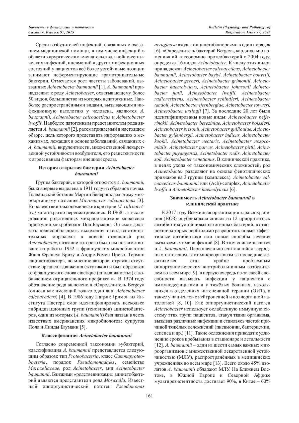 Статья: РОЛЬ БАКТЕРИЙ ACINETOBACTER BAUMANNII В ИНФЕКЦИОННОЙ ПАТОЛОГИИ (ОБЗОР ЛИТЕРАТУРЫ) (2025)