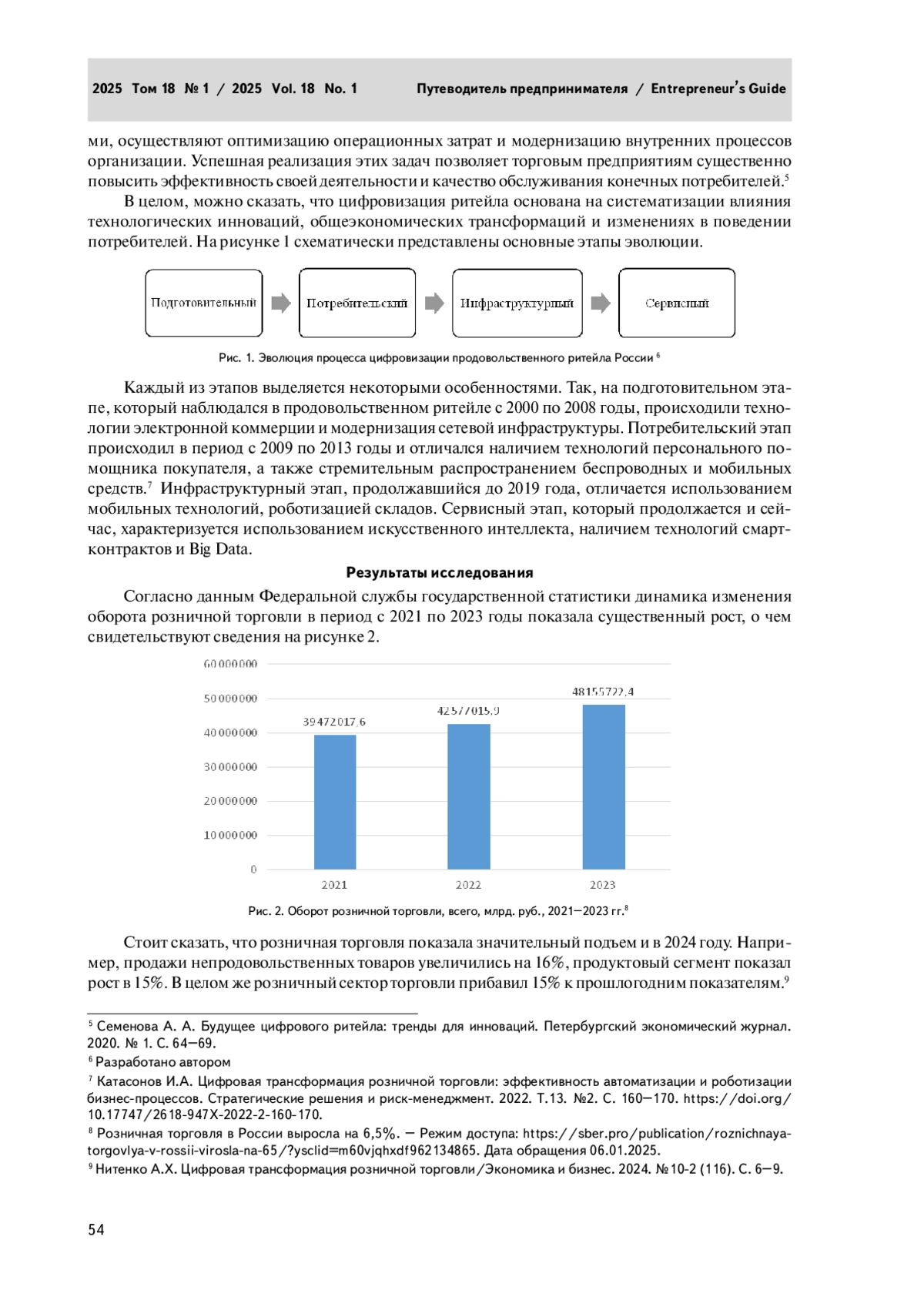 7. Нитенко А.Х. Цифровая трансформация розничной торговли. Экономика и бизнес. 2024. № 10-2 (116). С. 6-9.