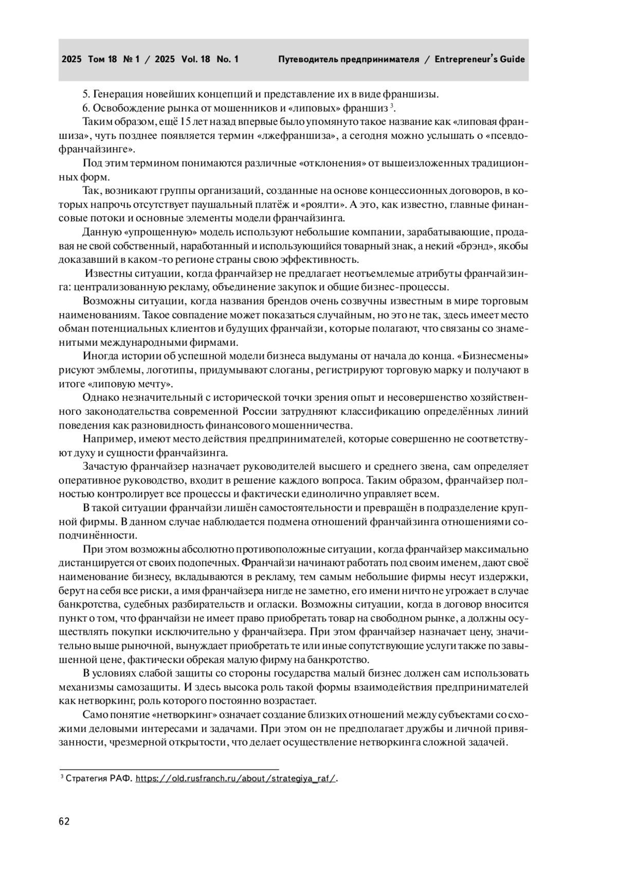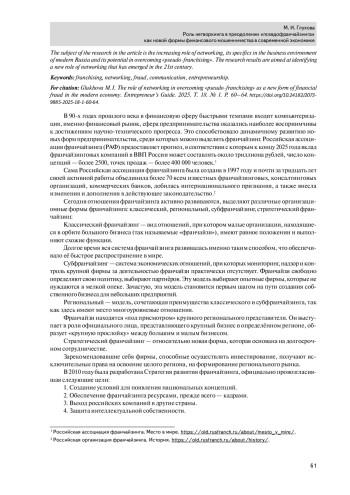 ГЛУХОВА М. И. РОЛЬ НЕТВОРКИНГА В ПРЕОДОЛЕНИИ «ПСЕВДОФРАНЧАЙЗИНГА» КАК НОВОЙ ФОРМЫ ФИНАНСОВОГО МОШЕННИЧЕСТВА В СОВРЕМЕННОЙ ЭКОНОМИКЕ // РОССИЙСКАЯ АКАДЕМИЯ ПРЕДПРИНИМАТЕЛЬСТВА. 2025. Т. 18, № 1