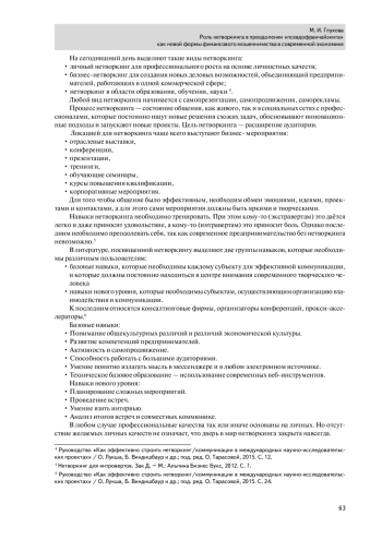 Предметом исследования в статье является возрастающая роль нетворкинга, его специфика в условиях бизнеса современной России и его потенциал в преодолении «псевдофранчайзинга». Исследовательские результаты заключаются в выявлении новой роли нетворкинга, которая проявилась в 21-ом веке.