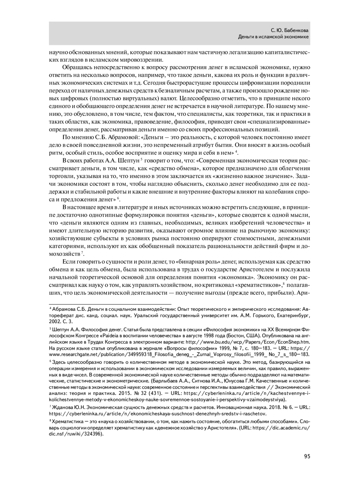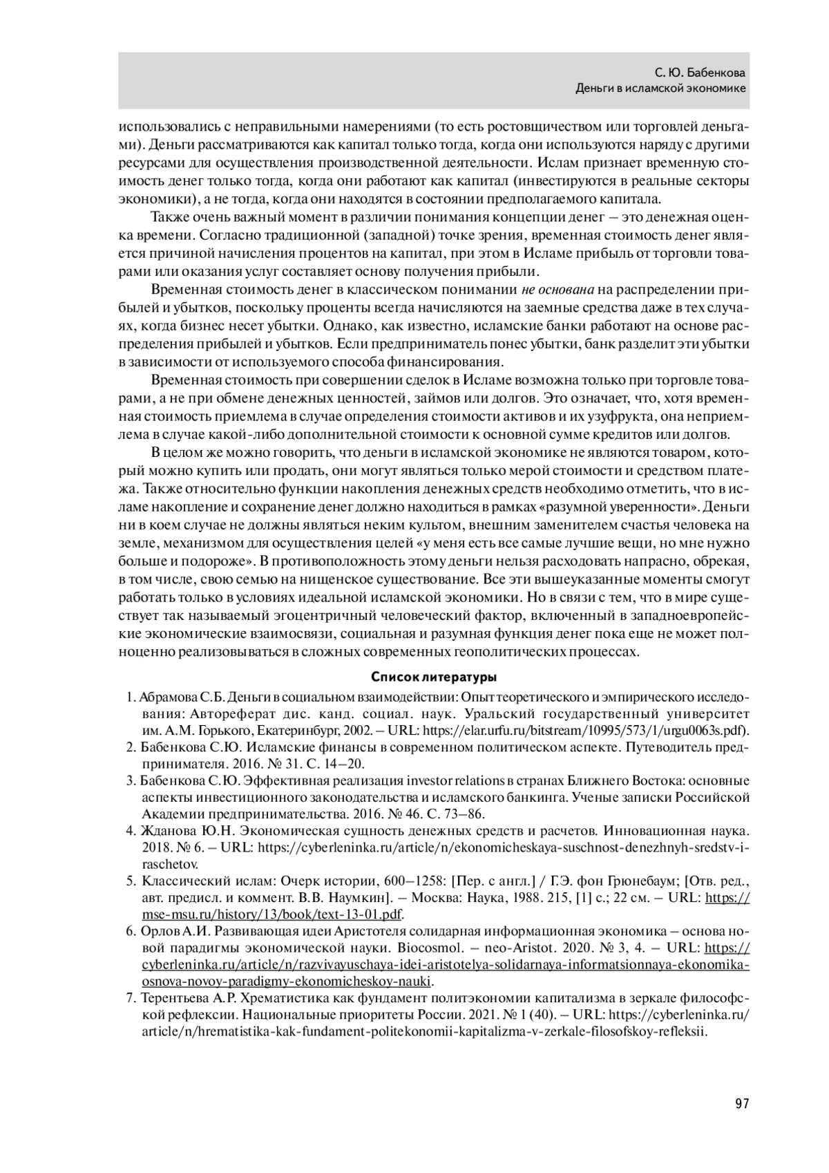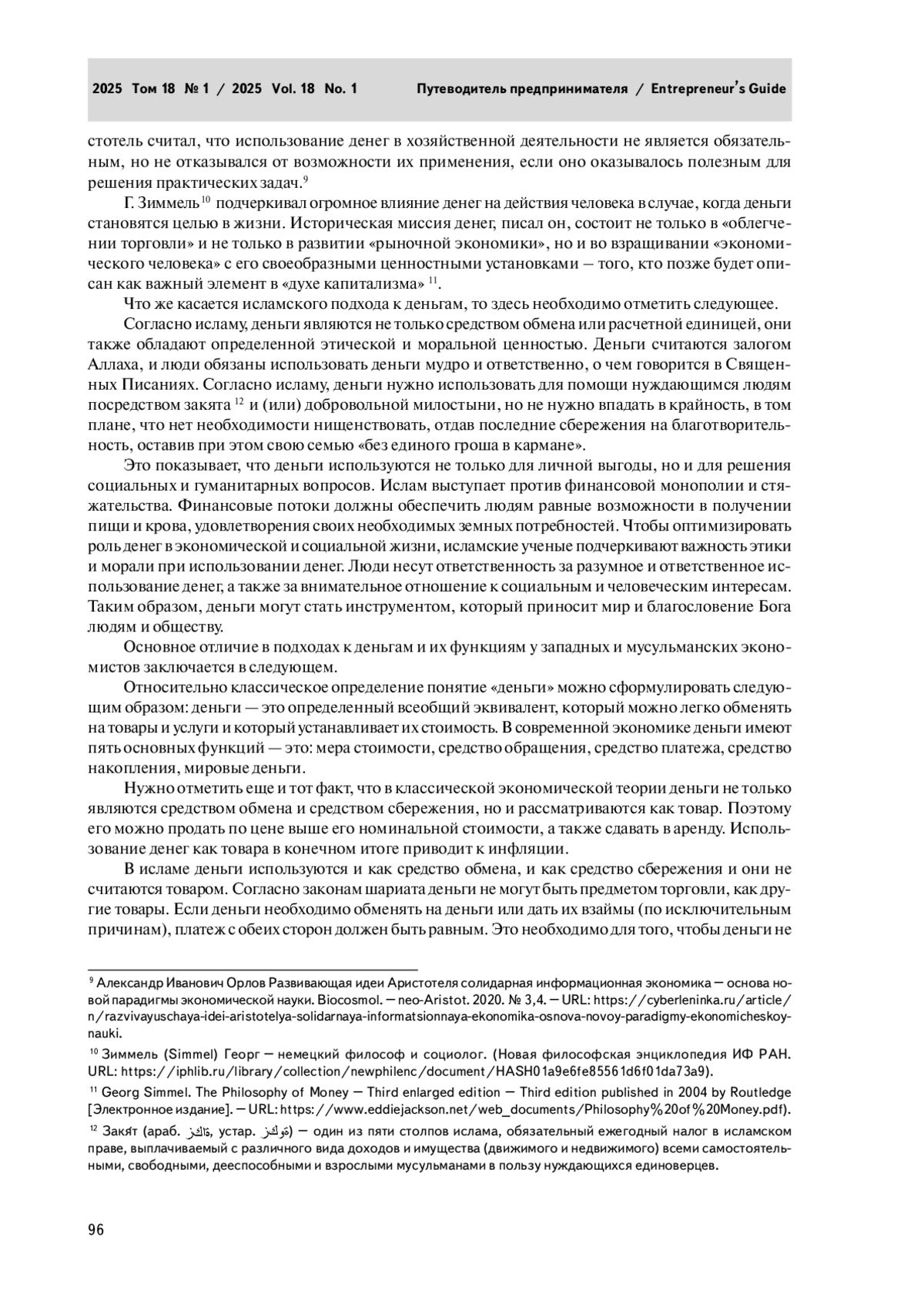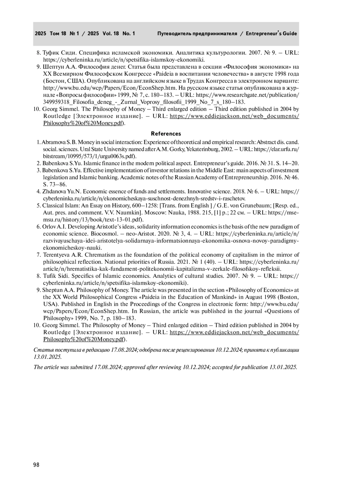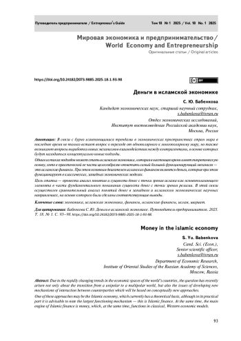 БАБЕНКОВА С. Ю. ДЕНЬГИ В ИСЛАМСКОЙ ЭКОНОМИКЕ // РОССИЙСКАЯ АКАДЕМИЯ ПРЕДПРИНИМАТЕЛЬСТВА. 2025. Т. 18, № 1
