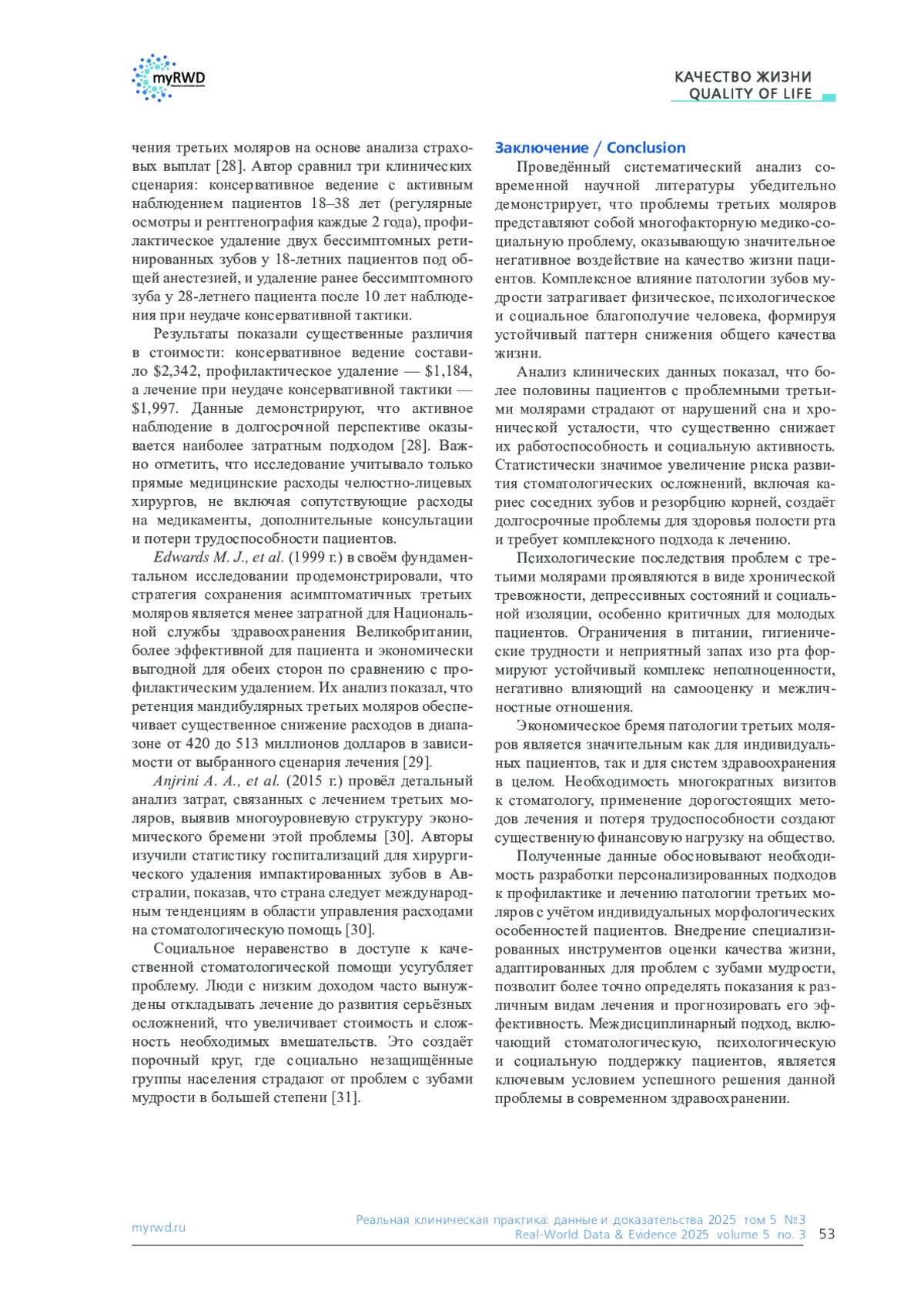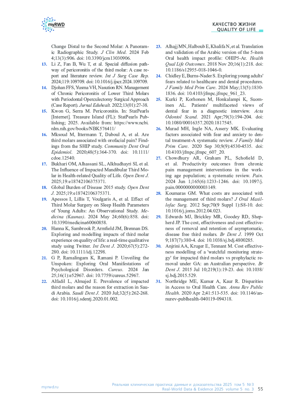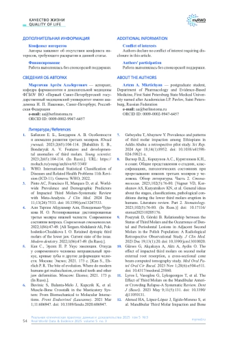 12. Ahmed HA, Lopez-Lopez J, Egido-Moreno S, et al. Mandibular Third Molar Impaction and Bone КАЧЕСТВО ЖИЗНИ QUALITY OF LIFE -.