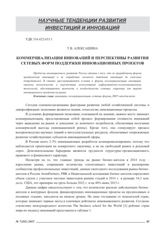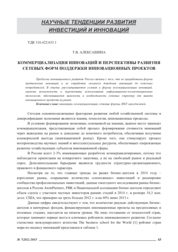 Проблемы инновационного развития России связаны с тем, что не проработаны формы продвижения инноваций и не отработан механизм доведения инноваций до конечных потребителей. В статье рассматриваются условия и формы коммерциализации инноваций, оценены возможности и перспективы использования информационно-коммуникационных технологий, обосновывается важность и необходимость сетевых структур для вывода инновационного продукта на рынок.