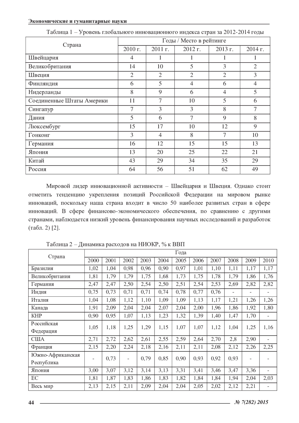 1. Исследование INSEAD: Глобальный индекс инноваций 2010-2014 годов. //Центр гуманитарных технологий. -Режим доступа: http://gtmarket.ru.