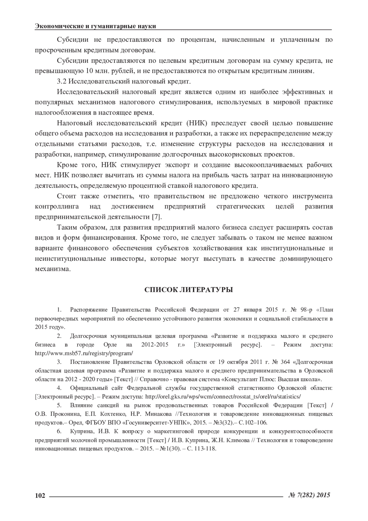 3. Постановление Правительства Орловской области от 19 октября 2011 г. № 364 «Долгосрочная областная целевая программа «Развитие и поддержка малого и среднего предпринимательства в Орловской области на 2012 - 2020 годы» [Текст] // Справочно - правовая система «Консультант Плюс: Высшая школа».