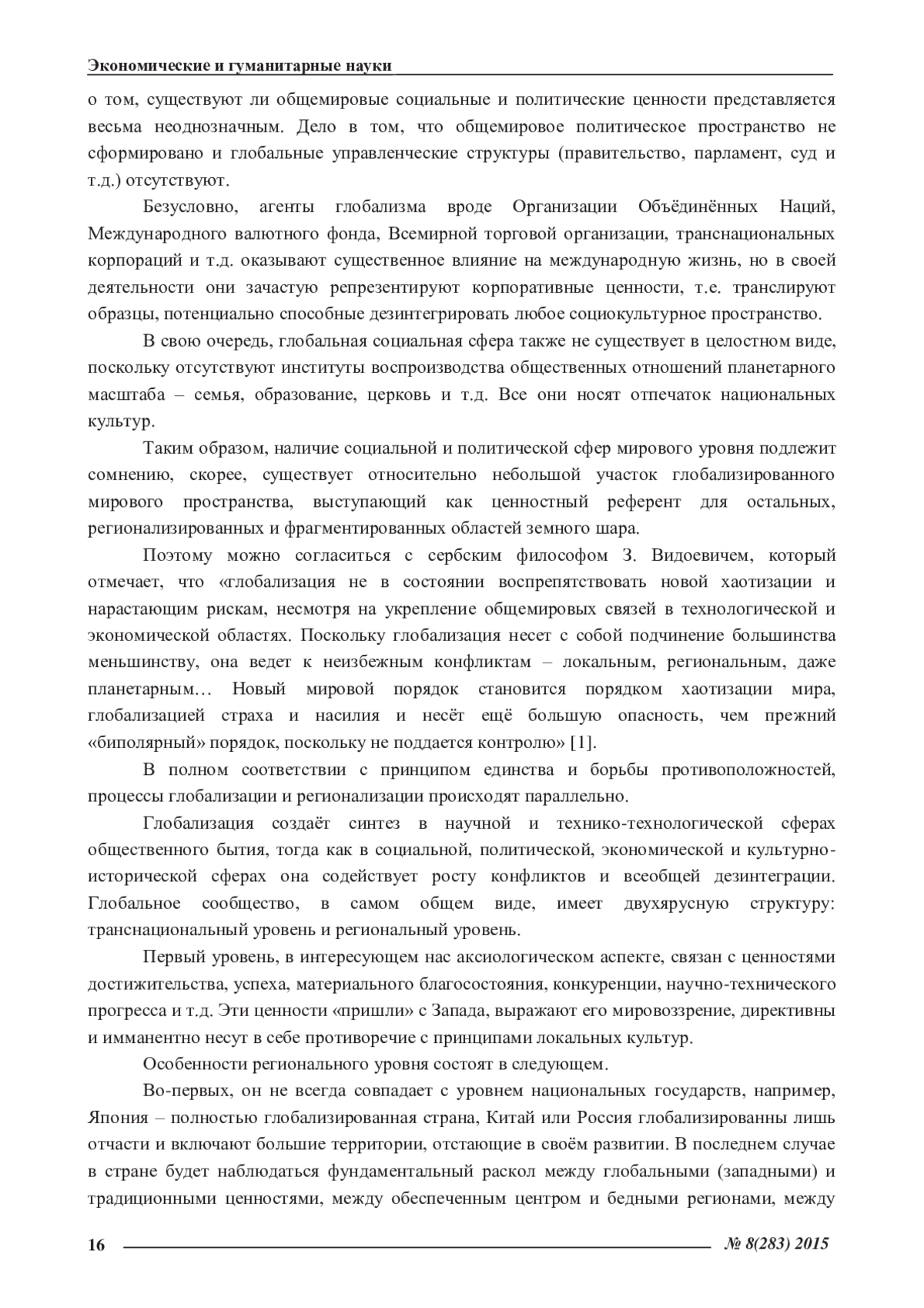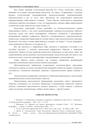 1. Видоевич, З. Глобализация, хаотизация и конфликты в современном мире [Текст] / З. Видоевич // «Социологические исследования». - 2005. - № 4. - С. 25-32. EDN: OOZEXJ