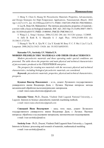 2. Нестеров А.А., Толстунов М.И., Лебедева А.В, Малыхин А.Ю., Дыкина, Л.А. Высокотемпературные пьезоматериалы на основе легированных фаз системы BiFeO3 - BaTiO3 / А.А. Нестеров, М.И. Толстунов, А.В Лебедева, А.Ю. Малыхин, Л.А. Дыкина // Российский химический журнал. - 2024. - №67(4), С. - 80-84. DOI: 10.6060/rcj.2023674.15