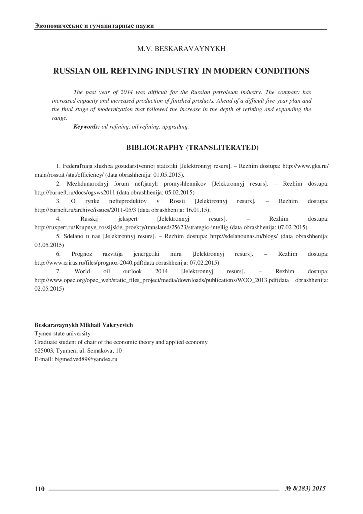 1. Федеральная служба государственной статистики . -Режим доступа: http://www.gks.ru/main/rosstat/stat/efficiency/(дата обращения: 01.05.2015).