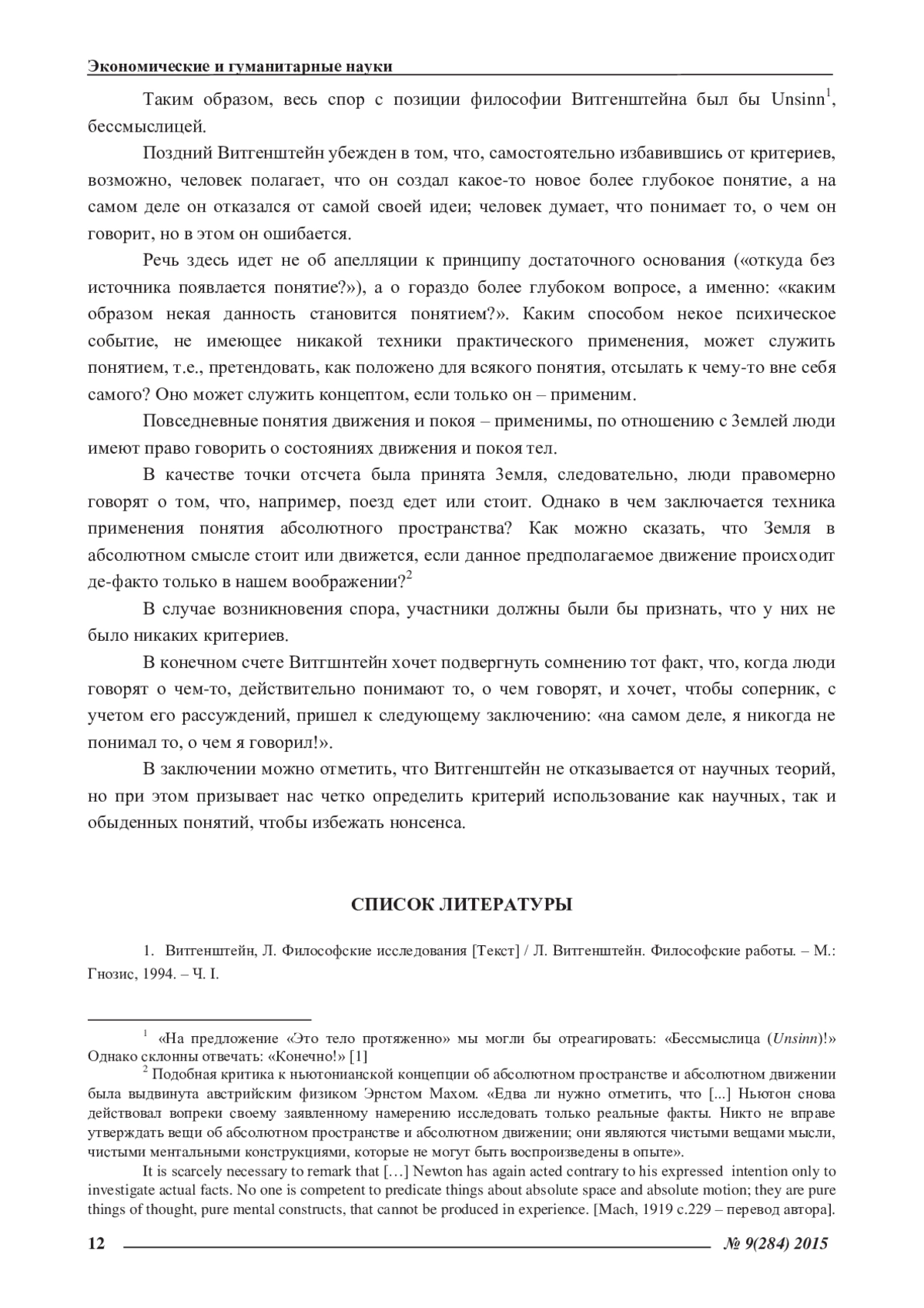 1. Витгенштейн, Л. Философские исследования [Текст] / Л. Витгенштейн. Философские работы. - М.: Гнозис, 1994. - Ч. I.