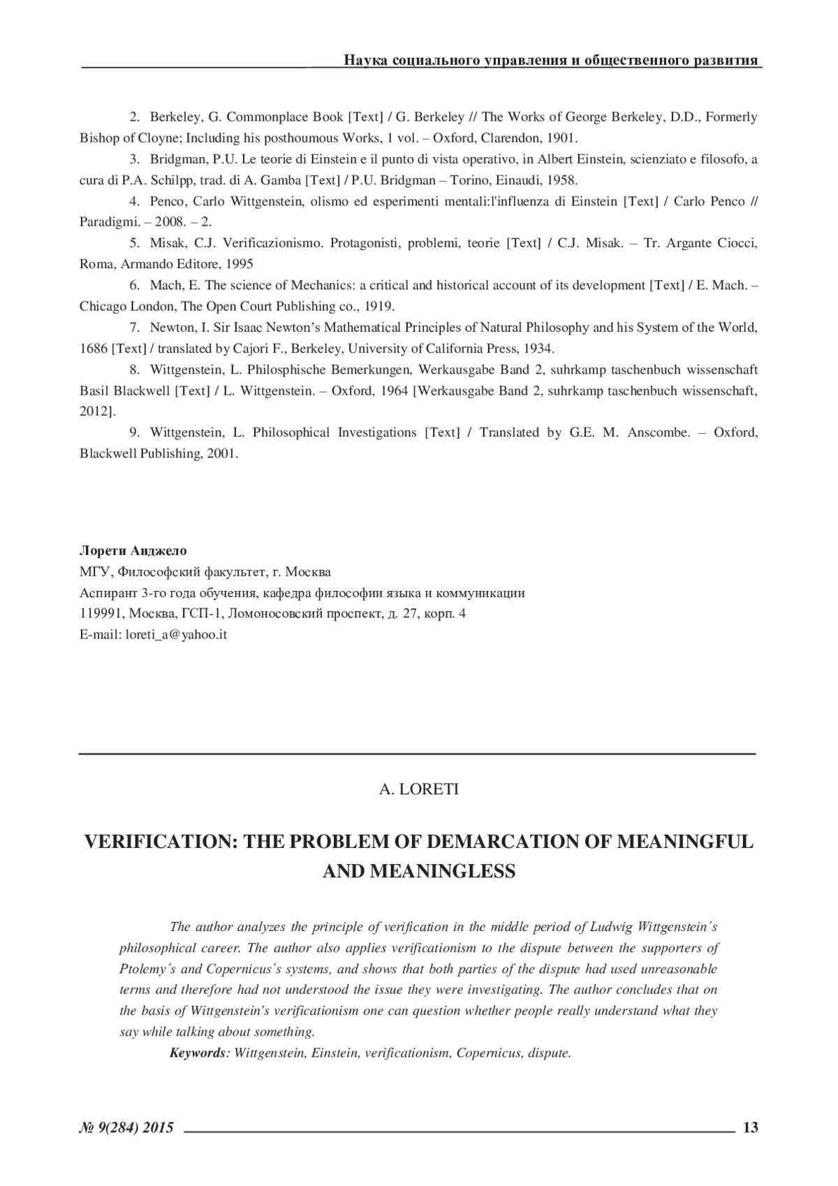 5. Misak, C.J. Verificazionismo. Protagonisti, problemi, teorie [Теxt] / C.J. Misak. - Tr. Argante Ciocci, Roma, Armando Editore, 1995.