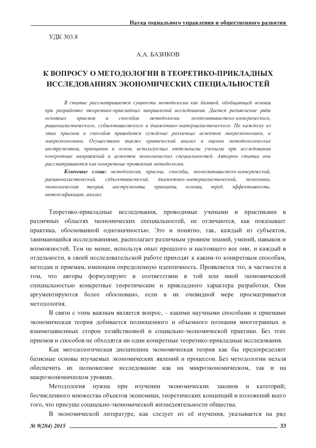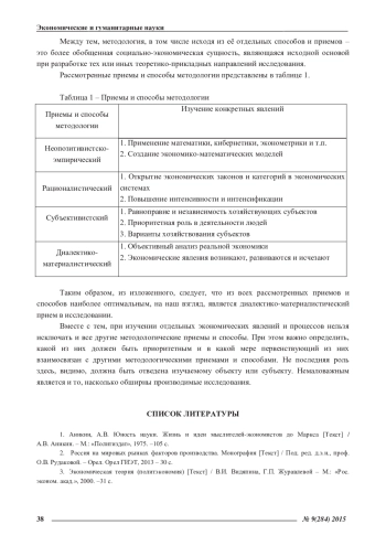 Теоретико-прикладные исследования, проводимые учеными и практиками в различных областях экономических специальностей, не отличаются, как показывает практика, обоснованной однозначностью. Это и понятно, так, каждый из субъектов, занимающийся исследованиями, располагает различным уровнем знаний, умений, навыков и возможностей. Тем не менее, используя опыт прошлого и настоящего все они, и каждый в отдельности, в своей исследовательской работе приходят к каким-то конкретным способам, методам и приемам, имеющим определенную идентичность. Проявляется это, в частности в том, что авторы формулируют в соответствии в той или иной экономической специальностью конкретные теоретические и прикладного характера разработки. Они аргументируются более обосновано, если в их очевидной мере просматривается методология