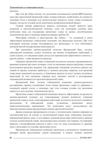 Актуальность рассматриваемой темы обусловлена определением влияния монетарной политики на важнейшие макроэкономические переменные. В статье рассмотрены основные экономические доктрины, такие как кейнсианство и монетаризм с позиции места денежнокредитной политики в макроэкономическом регулировании. Проанализированы механизмы реализации денежно-кредитной политики в данных теориях, а также проблемы, возникающие при использовании в денежном регулировании положений монетаризма и кейнсианства