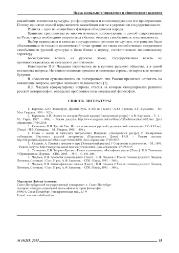 6. Тимошина, Е.В. Теория «Третьего Рима» в сочинениях «Филофеева цикла» /Е.В. Тимошина//Правоведение: Журнал. -СПб., 2005. -№ 4. -С. 181-208. EDN: JYJLAV