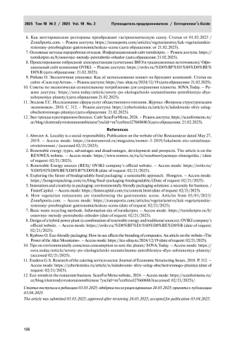 6. Как вегетарианские рестораны преображают гастрономическую сцену. Статьи от 01. 03. 2023 / ZonaSporta.com. - Режим доступа: https://zonasporta.com/articles/vegetarianstvo/kak-vegetarianskie-restorany-preobraghaut-gastronomicheskuu-scenu (дата обращения: от 21. 02. 2025).