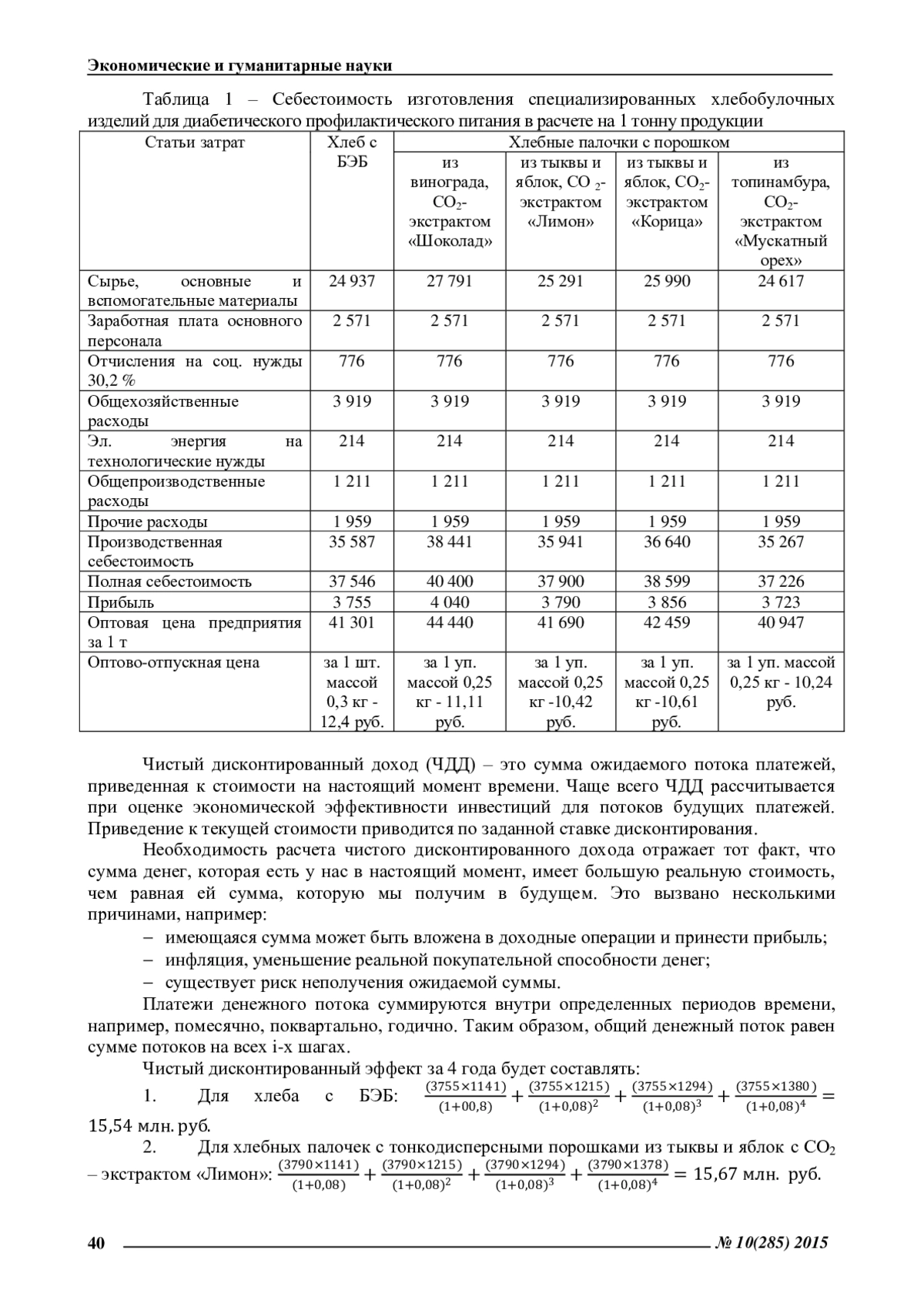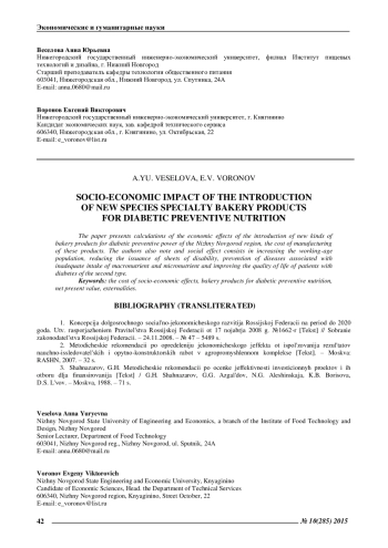 В статье приведены расчѐты экономического эффекта от внедрения новых видов хлебобулочных изделий для диабетического профилактического питания по Нижегородской области, себестоимости изготовления данных изделий. Авторы отмечают также и социальный эффект, заключающийся в повышении трудоспособности населения, сокращении выдачи листов по нетрудоспособности, профилактики заболеваний, связанных с недостаточным потреблением макро- и микронутриентов и повышение качества жизни больных сахарным диабетом второго типа.