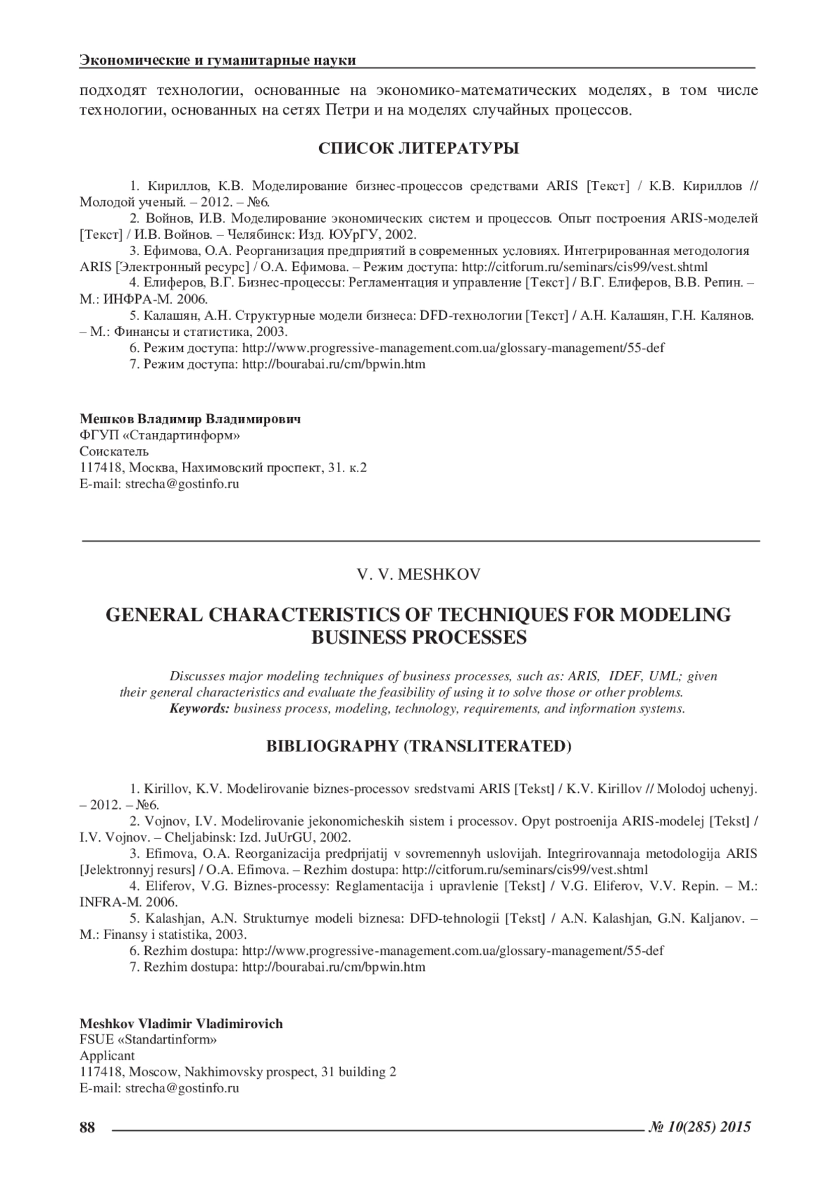 2. Войнов, И.В. Моделирование экономических систем и процессов. Опыт построения ARIS-моделей [Текст] / И.В. Войнов. - Челябинск: Изд. ЮУрГУ, 2002. EDN: SEBZXN
