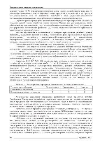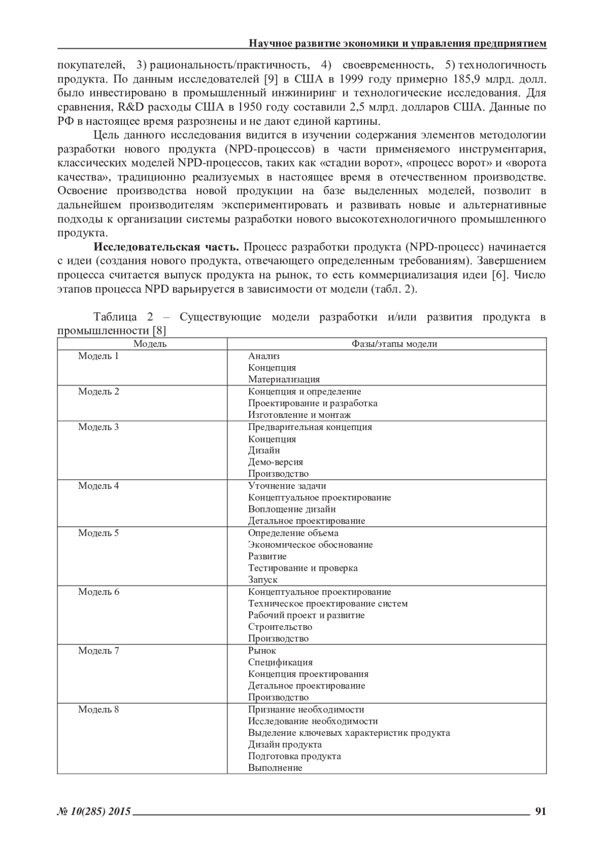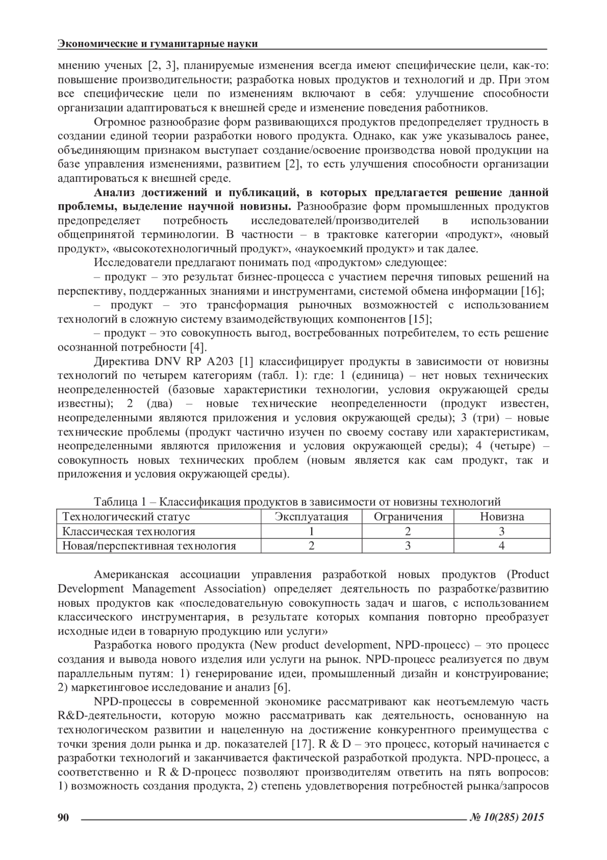 В исследовании на основе систематизации накопленного научного опыта уточняется понятийный аппарат; предлагается кластеризация решений по разработке нового продукта в общем бизнес-контексте текущего развития отечественных предприятий на основе внедрения в практику производственного менеджмента ряда моделей NPD-процессов, в частности – моделей «стадии ворот», «процесс ворот» и «ворота качества», реализуемых в настоящее время в рамках единой методологии; изучаются условия создания продукта с использованием инструментария управления PROsys, LLC