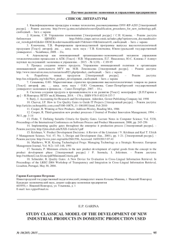 8. Системы создания продукта в промышленности и их развитие [Текст]: монография / [Е.П.Гарина и др.] - Н.Новгород: НГПУ им.К.Минина, 2014. - 176 с. ISBN: 978-5-85219-337-7