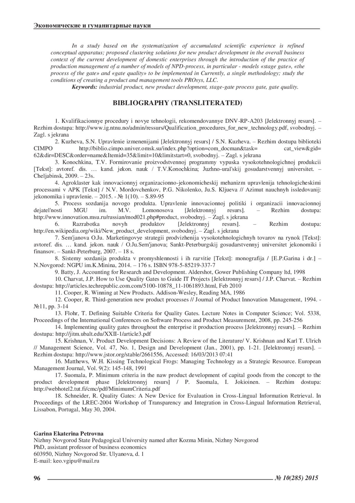15. Krishnan, V. Product Development Decisions: A Review of the Literature / V. Krishnan and Karl T. Ulrich // Management Science, Vol. 47, No. 1, Design and Development (Jan., 2001), pp. 1-21. [Электронный ресурс]. - Режим доступа: http://www.jstor.org/stable/2661556, Accessed: 16/03/2013 07:41.