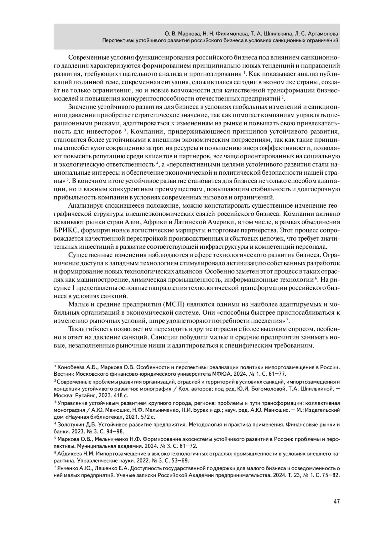 11. Шпилькина Т.А., Филимонова Н.Н., Артамонова Л.С., Шишова И.А. Тенденции развития отраслей и секторов экономики России в условиях санкций, импортозамещения и концепции устойчивого развития. Ученые записки Российской Академии предпринимательства. 2022. Т. 21, № 3. С. 68-76.
