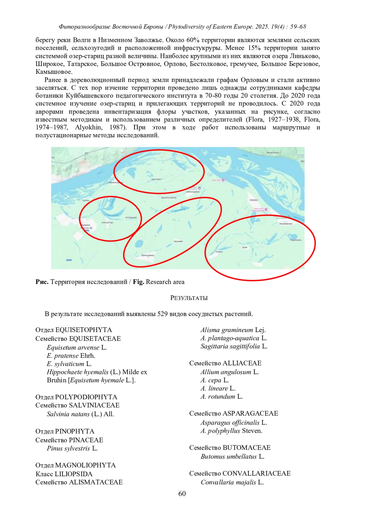 Ранее в дореволюционный период земли принадлежали графам Орловым и стали активно заселяться. С тех пор изчение территории проведено лишь однажды сотрудниками кафедры ботаники Куйбышевского педагогического института в 70-80 годы 20 столетия. До 2020 года системное изучение озер-стариц и прилегающих территорий не проводилось. С 2020 года аврорами проведена инвентаризация флоры участков, указанных на рисунке, согласно известным методикам и использованием различных определителей (Flora, 1927–1938, Flora, 1974–1987, Alyokhin, 1987). При этом в ходе работ использованы маршрутные и полустационарные методы исследований.