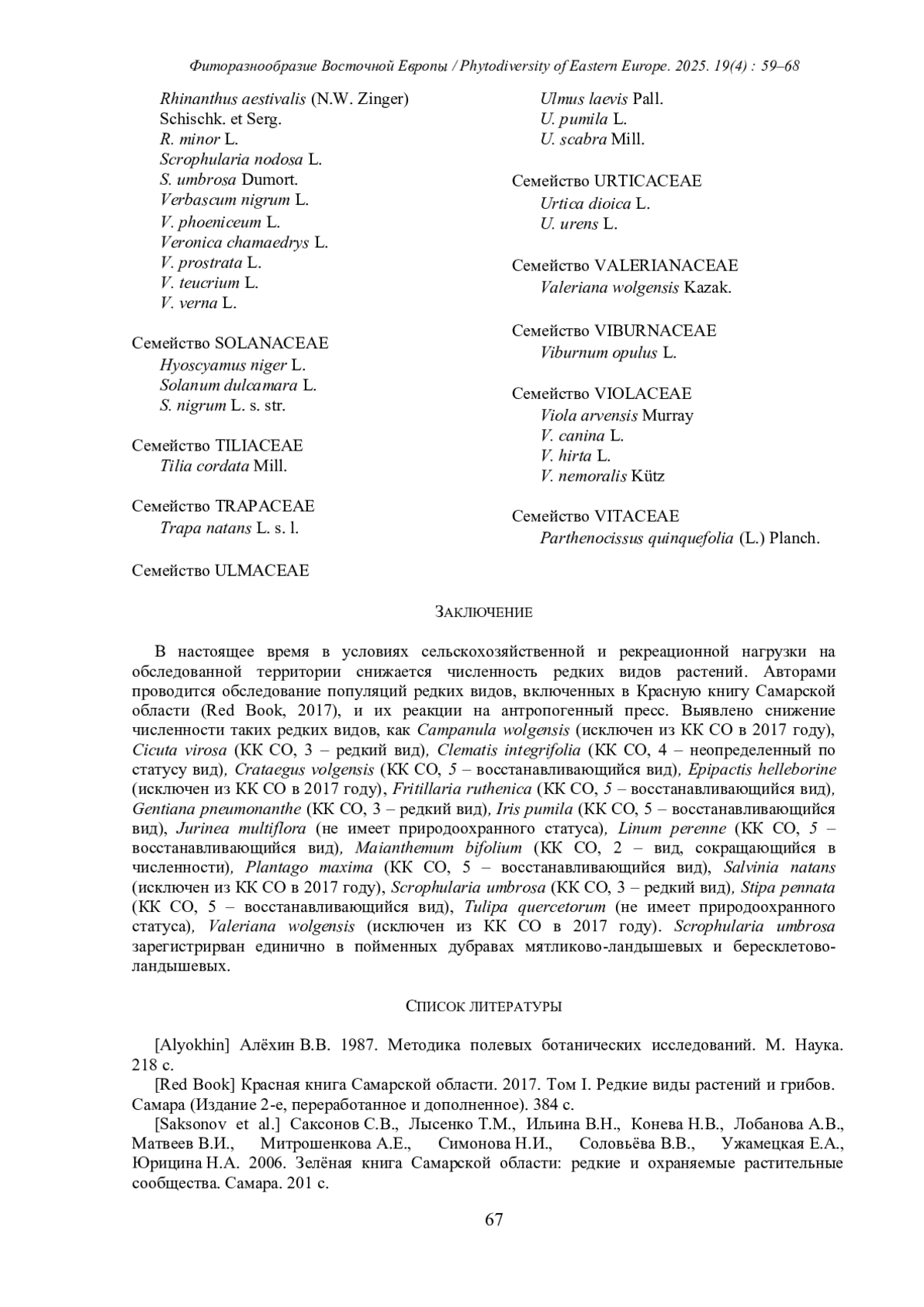 3. [Saksonov et al.] Саксонов С.В., Лысенко Т.М., Ильина В.Н., Конева Н.В., Лобанова А.В., Матвеев В.И., Митрошенкова А.Е., Симонова Н.И., Соловьёва В.В., Ужамецкая Е.А., Юрицина Н.А. 2006. Зелёная книга Самарской области: редкие и охраняемые растительные сообщества. Самара. 201 с. EDN: CUGNJF