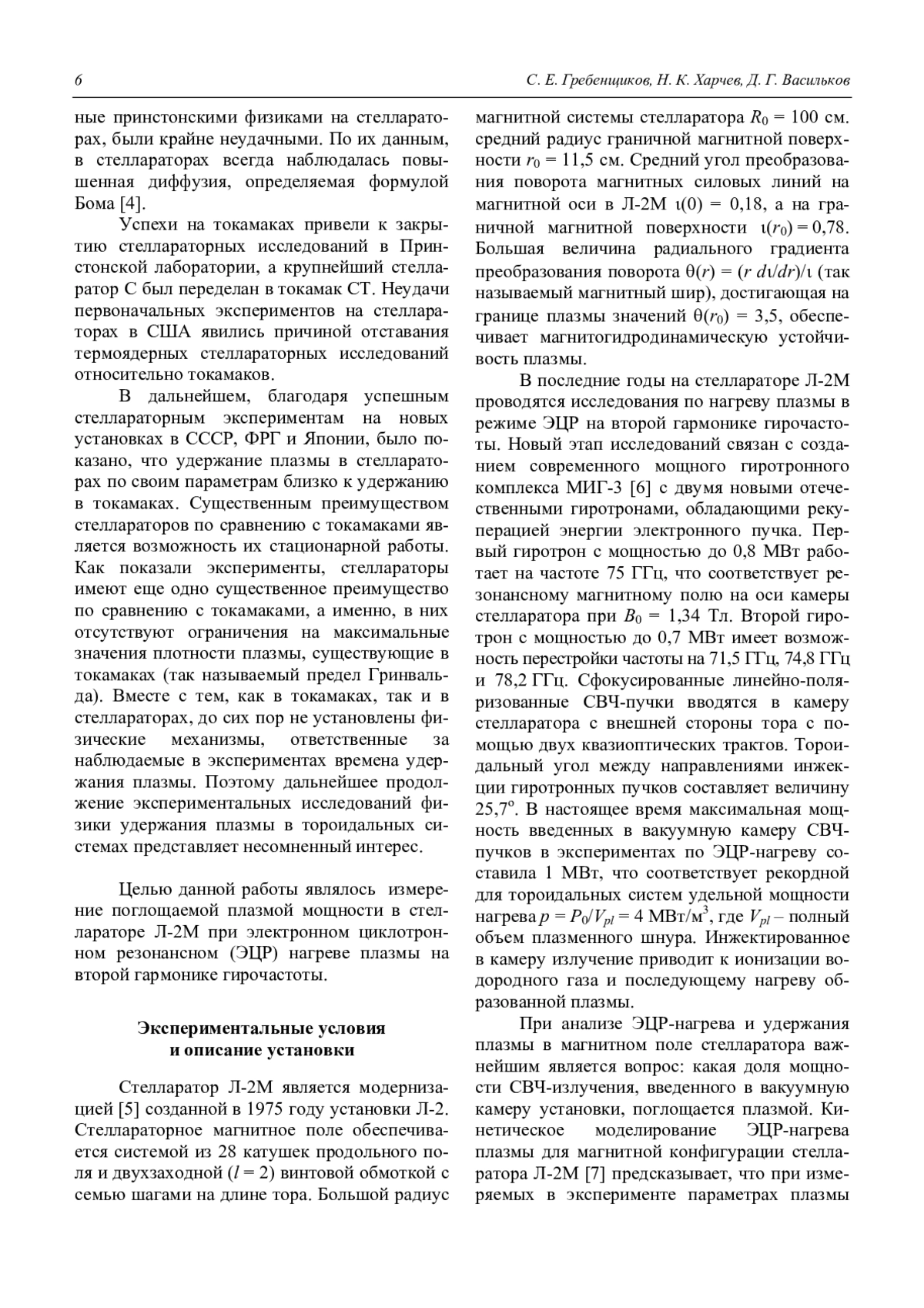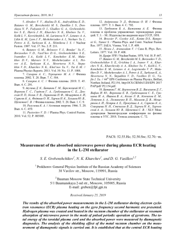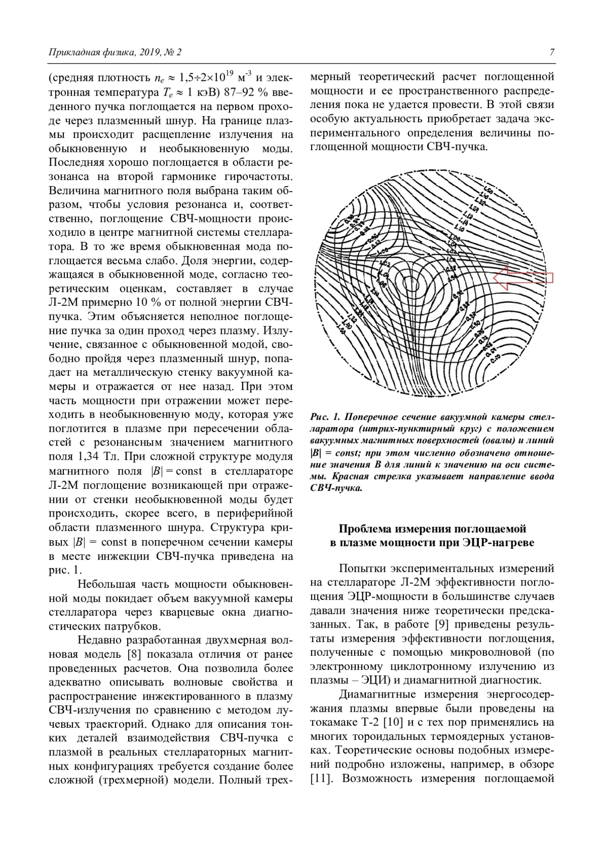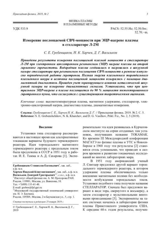 Статья: Измерение поглощаемой СВЧ-мощности при ЭЦР-нагреве плазмы в стеллараторе Л-2М (2019)