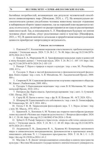 2. Коваль Е. А., Мартынова М. Д. Трансформация моральных норм и ценностей в эпоху больших данных // Этическая мысль. 2024. Т. 24. № 2. С. 105-119. DOI: 10.21146/2074-4870-2024-24-2-105-119 EDN: TZCVKI