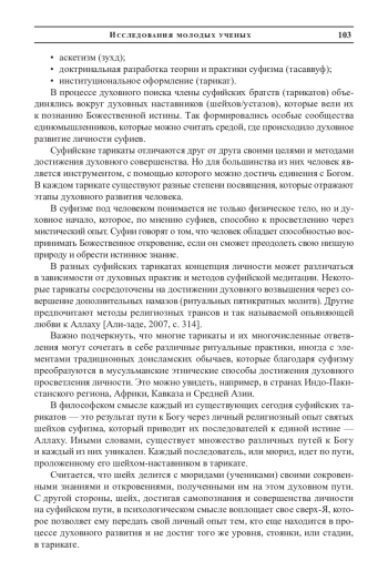 Суфизм является мистико-аскетической практикой ислама, который оказал значительное влияние на формирование мусульманской философии и культуры. В контексте суфийских традиций особый интерес представляет концепция личности, которая раскрывает глубинные аспекты духовного становления суфия и его духовно-психологическое взаимодействие с миром.