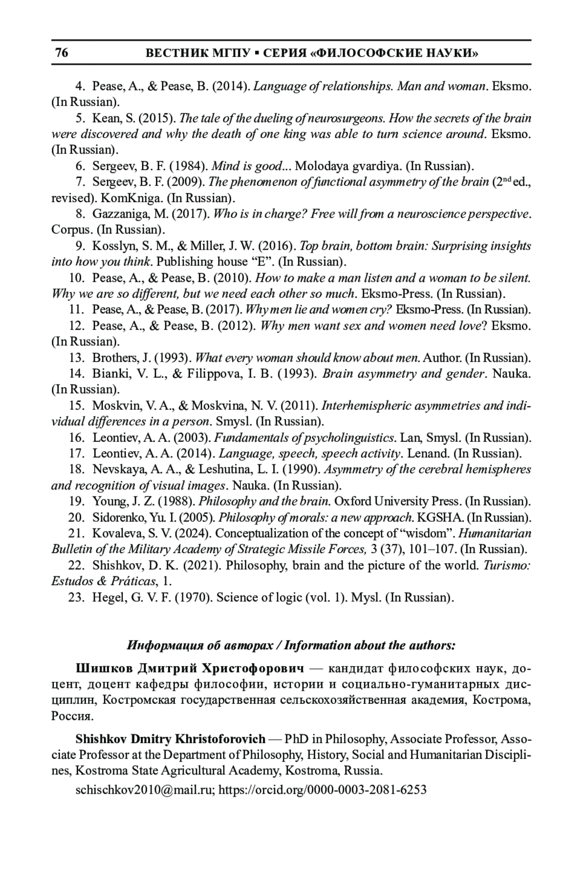 22. Shishkov D. K. Philosophy, brain and the picture of the world // Turismo: Estudos & Praticas. 2021. № 1.