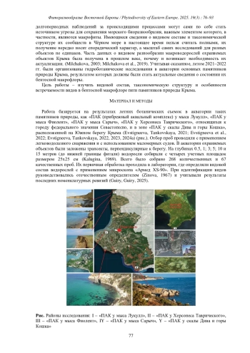 9. [Evstigneeva et al.] Евстигнеева И.К., Танковская И.Н., Евстигнеев В.П. 2022. Макрофитобентос памятника природы регионального значения “Прибрежный аквальный комплекс у Херсонеса Таврического”. - Экосистемы. 30: 22-37.