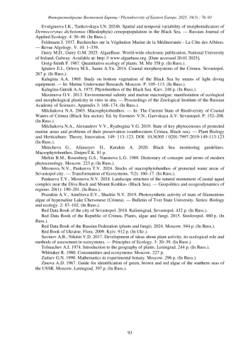2. [Belich et al.] Белич Т.В., Садогурская С.А., Садогурский С.Е. 2019. К изучению водорослей-макрофитов и цианобактерий прибрежно-аквальных комплексов юго-восточного района Крыма. - Бюллетень ГНБС. 131: 61-69.